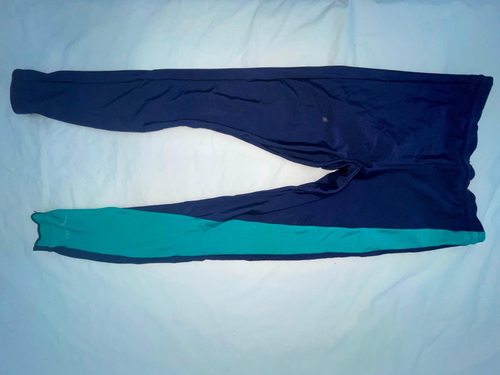 как выглядит VTG 90S WOMENS S MOVING COMFORT TUTONE SPANDEXE BLUEGREEN WORKOUT LEGGINGS PANTS фото