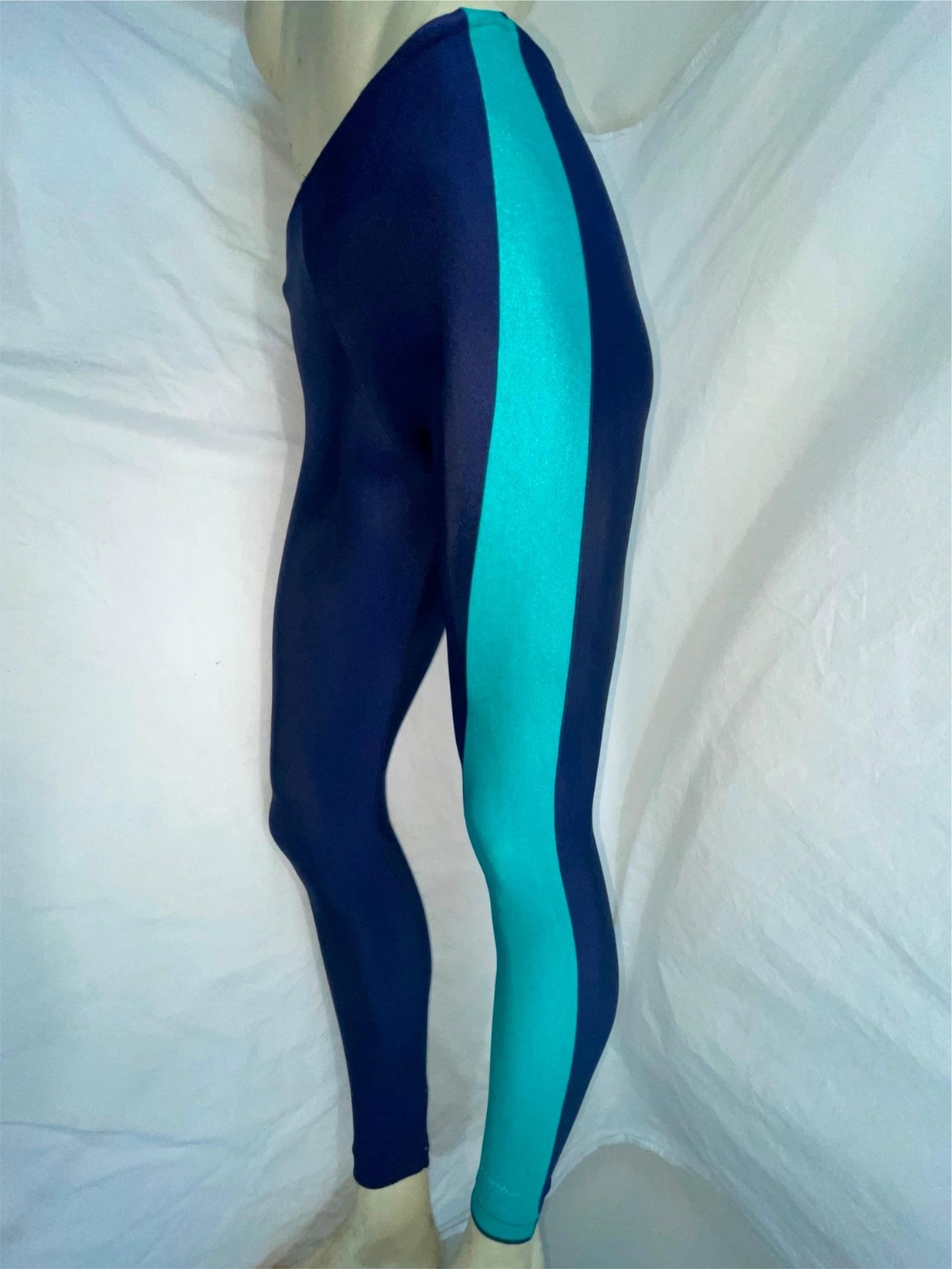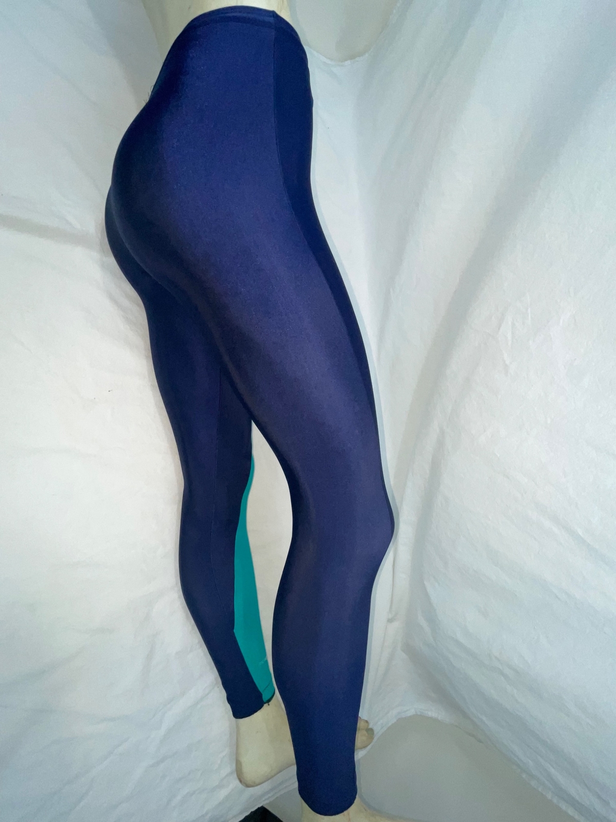 VTG 90S WOMENS S MOVING COMFORT TUTONE SPANDEXE BLUEGREEN WORKOUT LEGGINGS PANTS