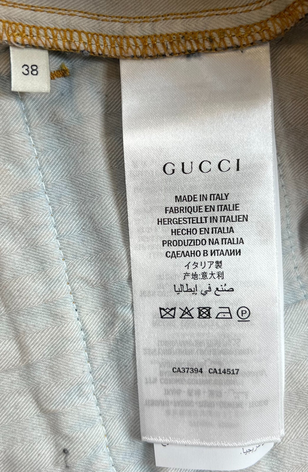 как выглядит Gucci Mens Dark Blue Denim Chino Pants with Red Logo Embroidery 38 515969 4469 фото
