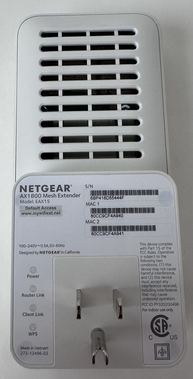 как выглядит Netgear AX1800 Wi-Fi 6 Mesh Wall Plug Range Extender and Signal Booster EAX15 фото