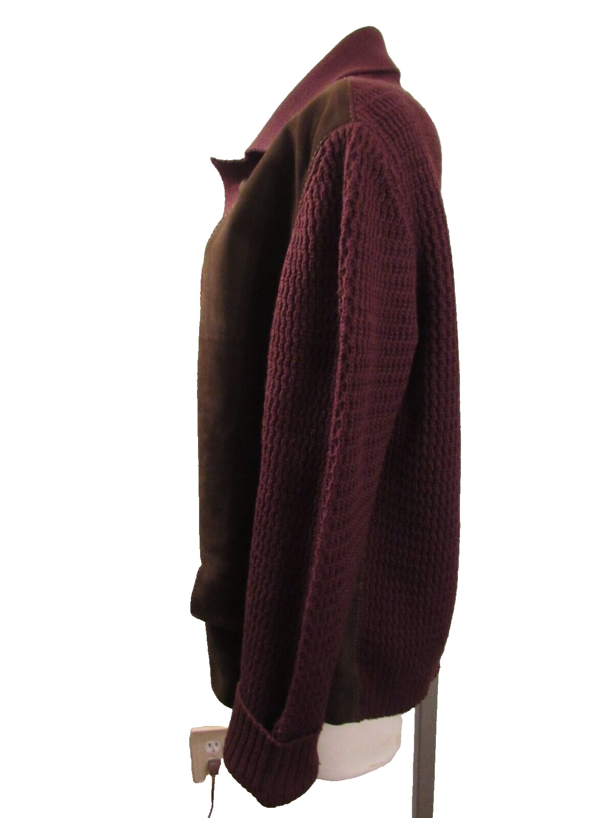 vintage 60s/70s brown knitted wool suede leather button up cardigan 50