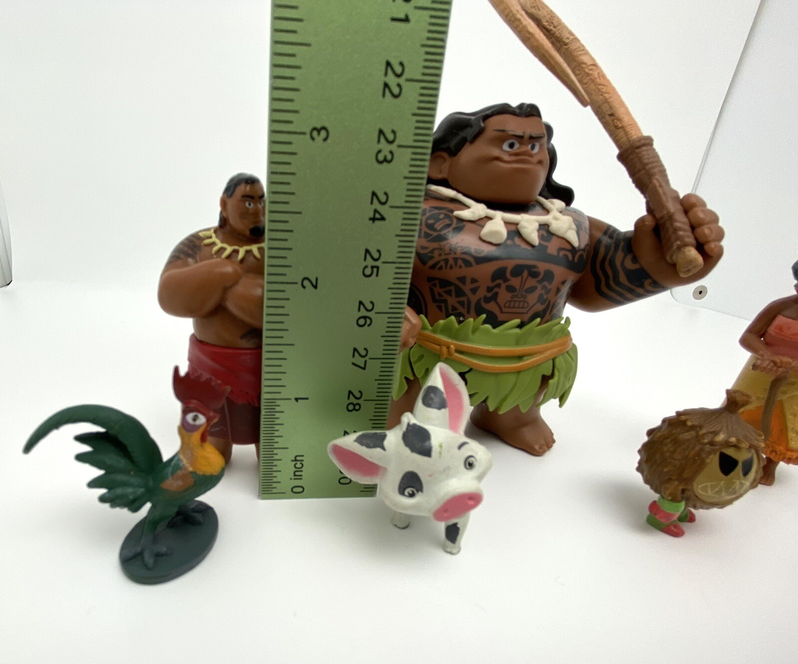 Mixed Lot of 7 Moana Figures Hei Hei Rooster Maui Gramma Tala Pua Pig Chief Tui