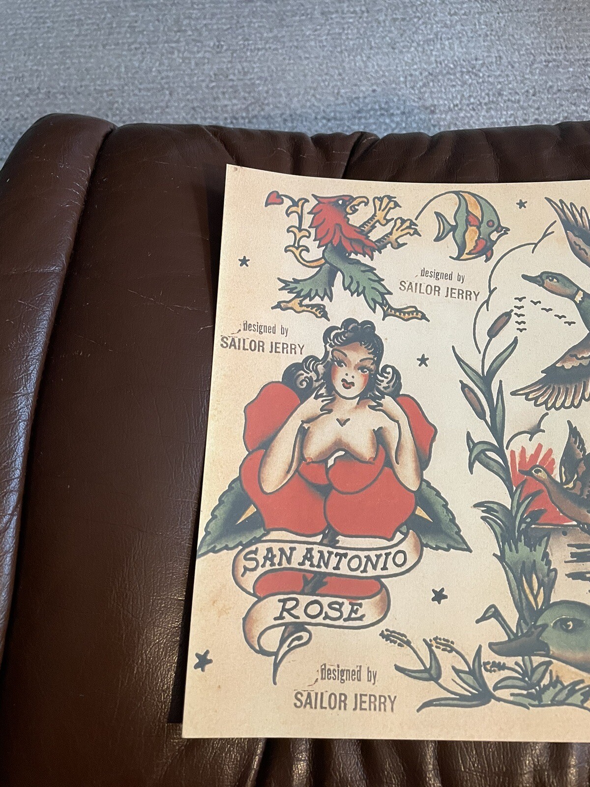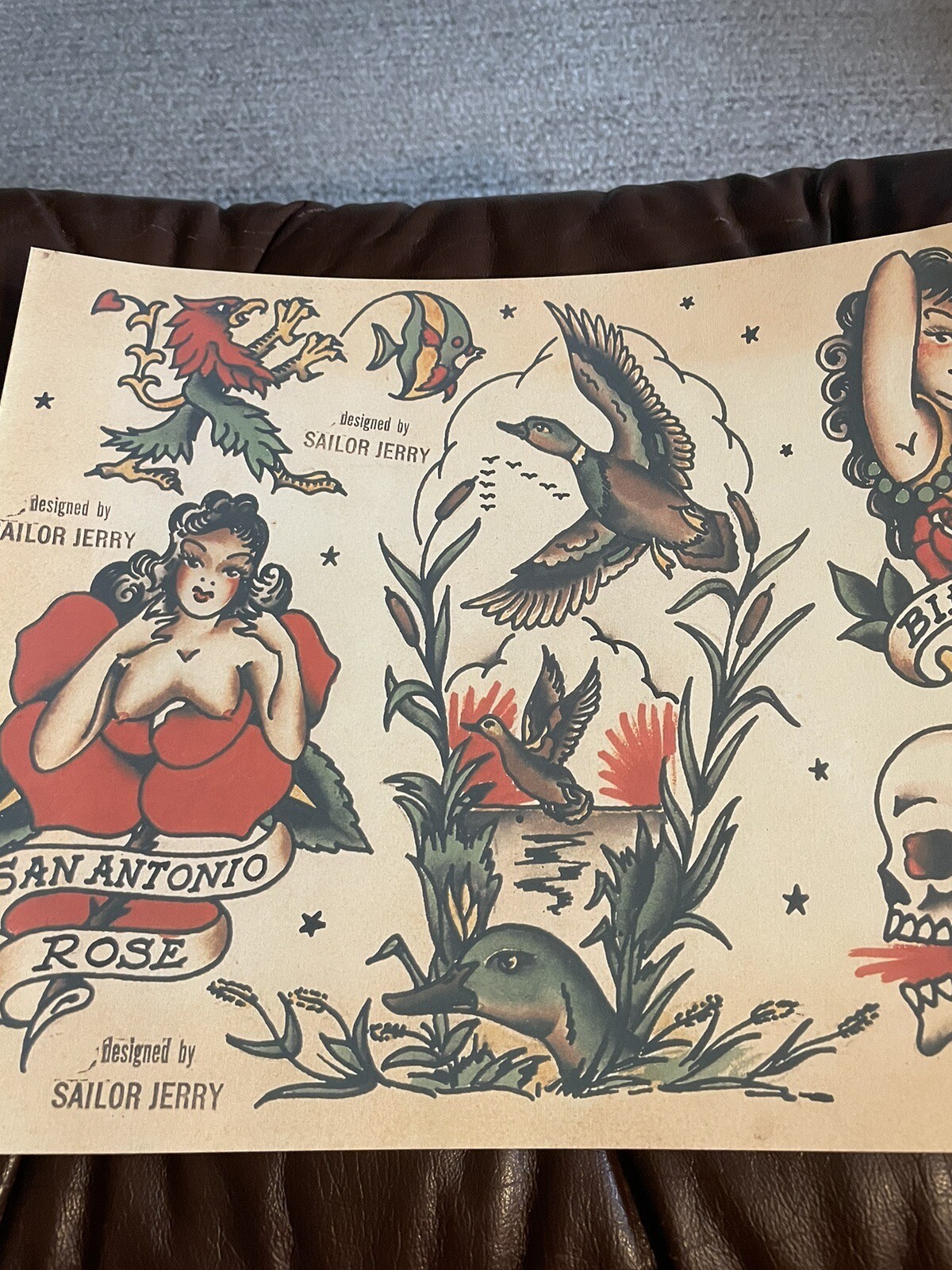 как выглядит Designed By Sailor Jerry Tattoo flash art sheet lot 137 9Q Skull Print фото