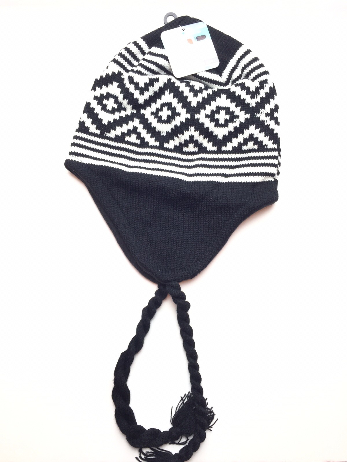Graviti Unisex Adult Winter Hat Black/White With Ears Flaps Size See Photos