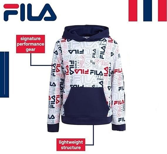 как выглядит Fila Boys Active Hoodie Sweatshirt Navy Classic Logo Size Small 8 New фото