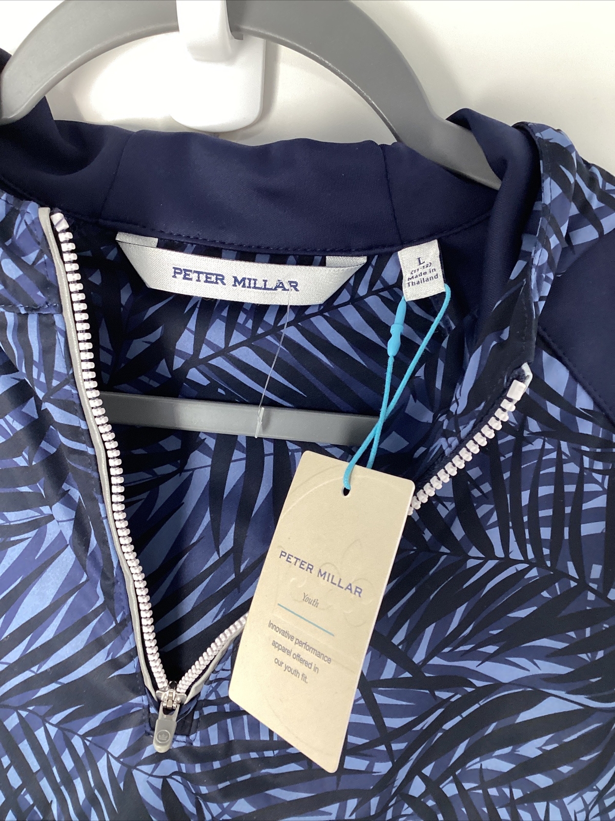 как выглядит Peter Millar Youth Hybrid 1/4 Zip Hoodie Boys Size Large 11-12 Blue NWT 150- фото