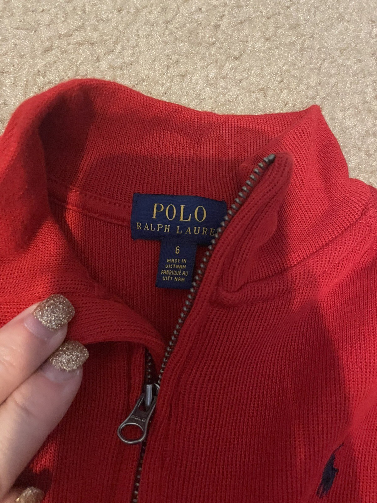 Polo By Ralph Lauren Boys Long Sleeve 1/4 Zip Mock Red Sweater 6
