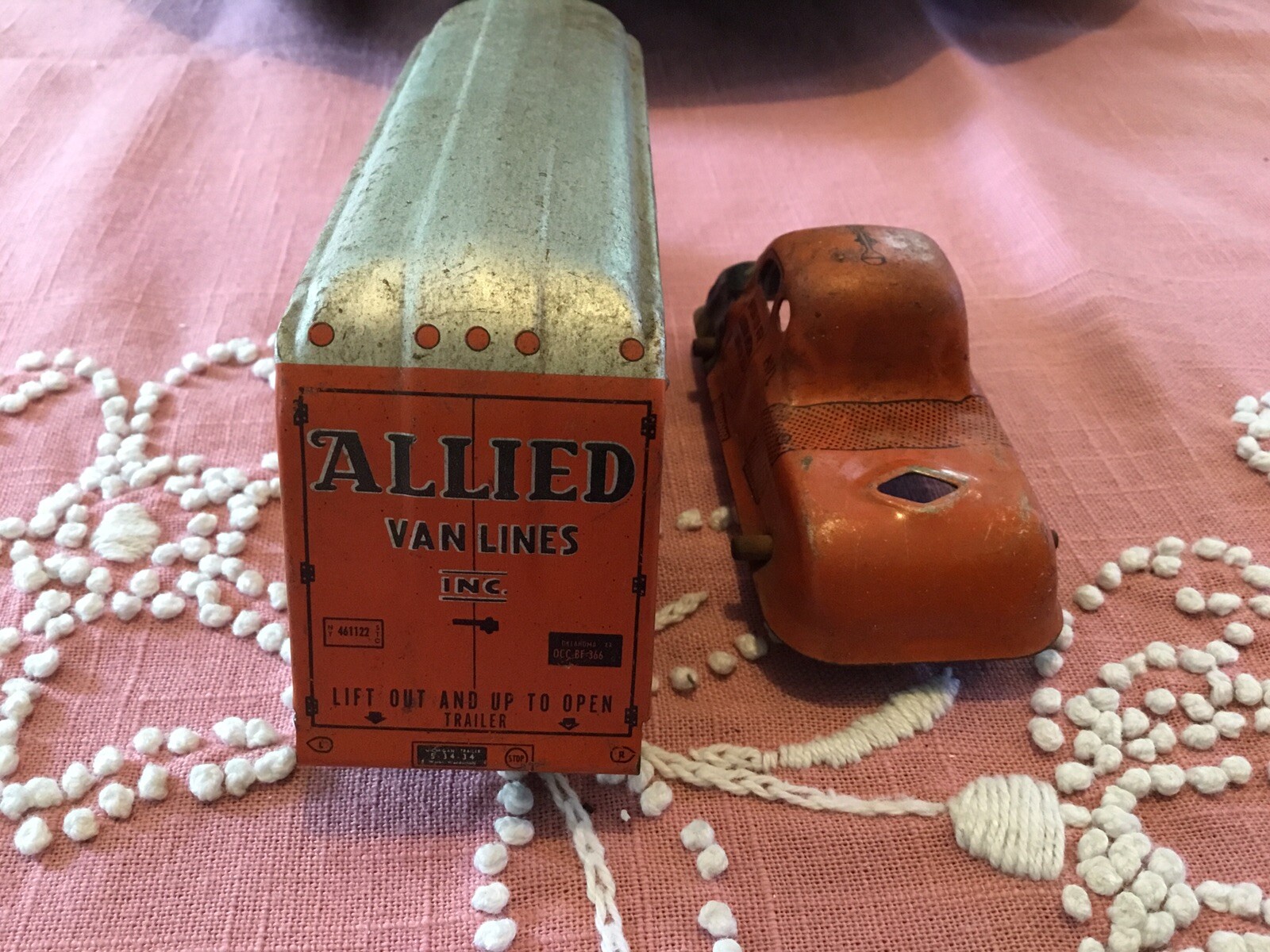 Vintage Allied Van Lines Toy Truck Pressed Tin Good Condition