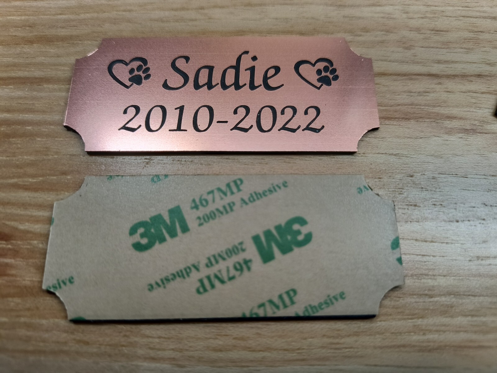 Custom Engraved 1.25x3 Rose Gold Pet Name Memory Urn Plaque Sign Plate Dog Cat