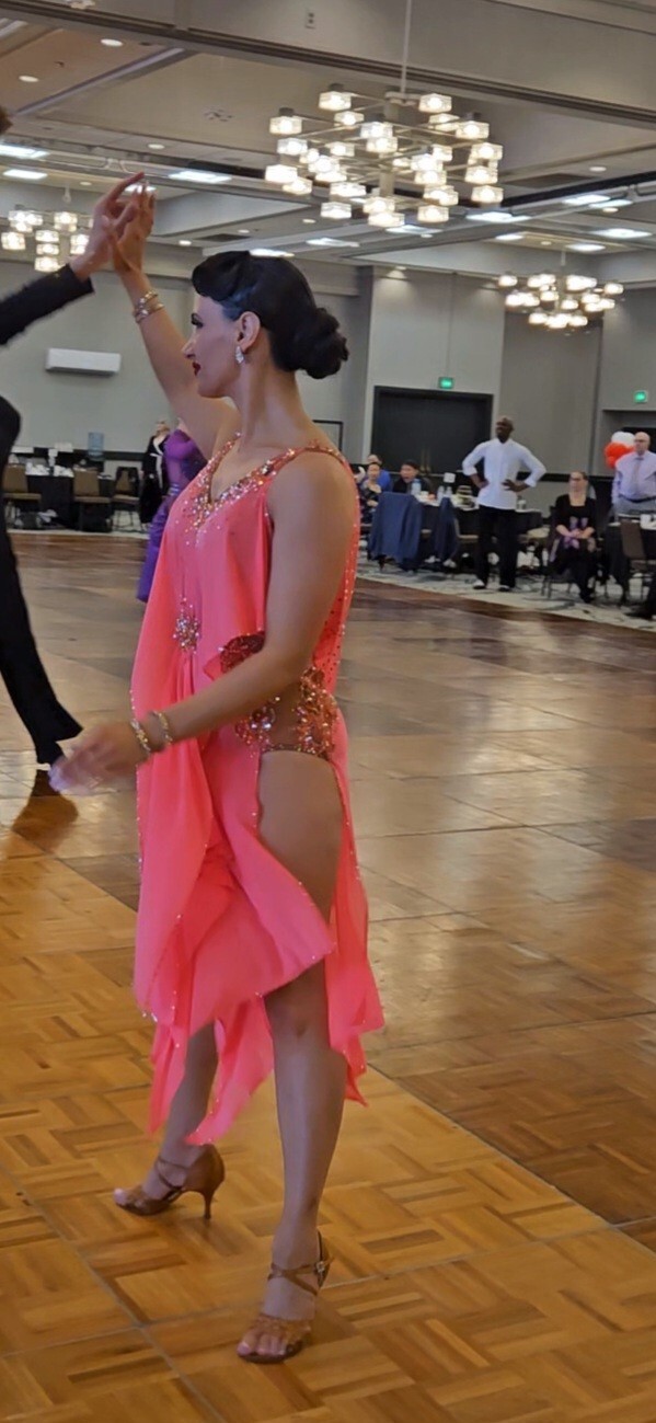 как выглядит Rhythm Latin Ballroom Dance Dress Competition Costume Coral Pink Xs - Small фото