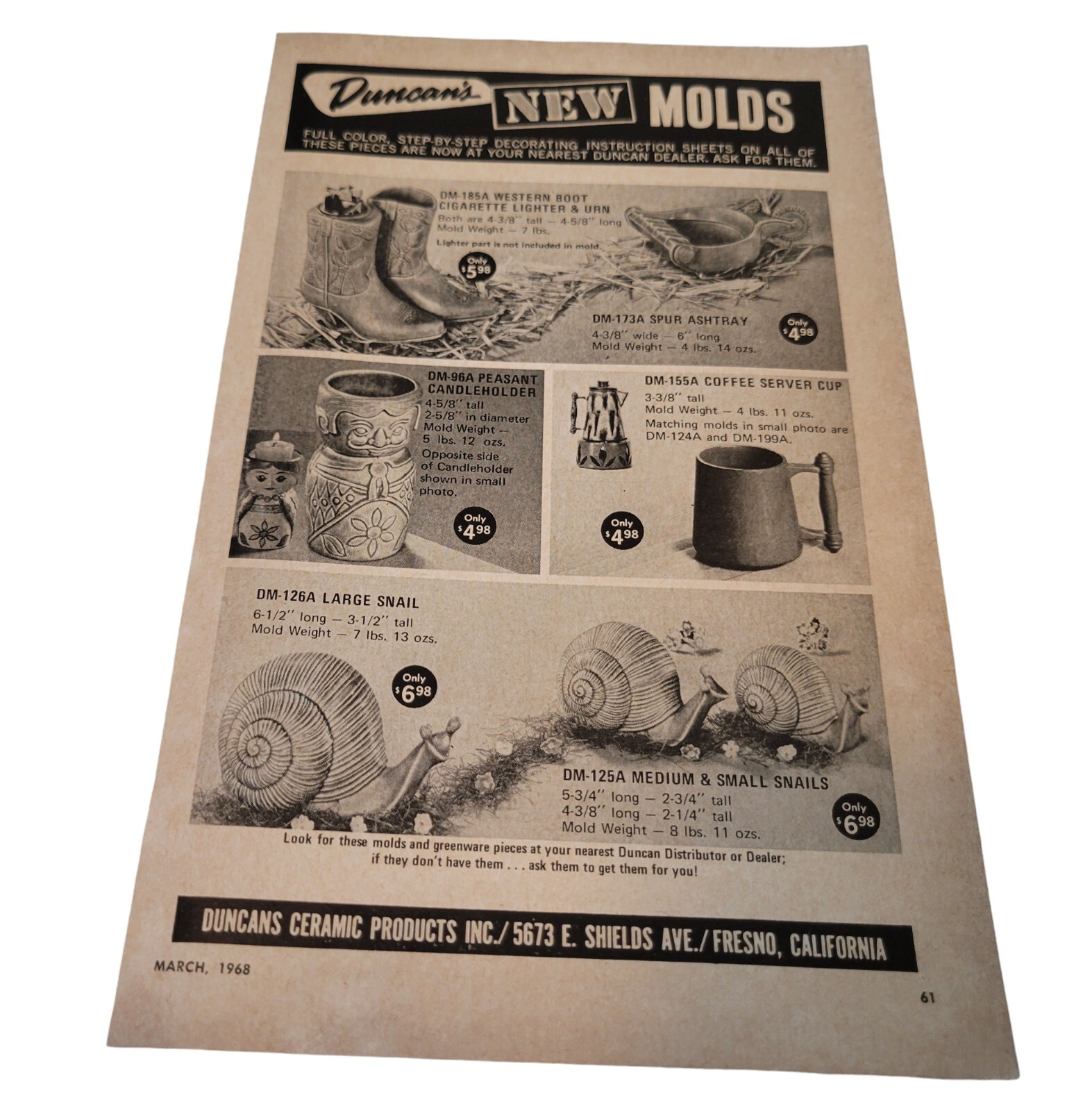 Vtg 60's 70's Duncan Ceramic Molds Print ADs Lot of 4 Figural Pottery Tiki MCM