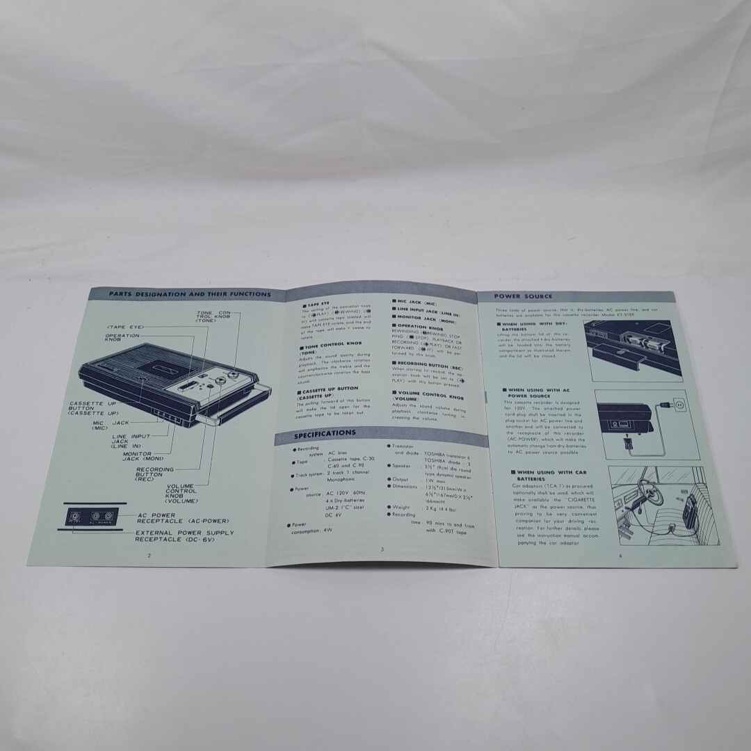как выглядит Vintage TOSHIBA Model KT-210E Cassette Tape Recorder Player - Owners Manual фото