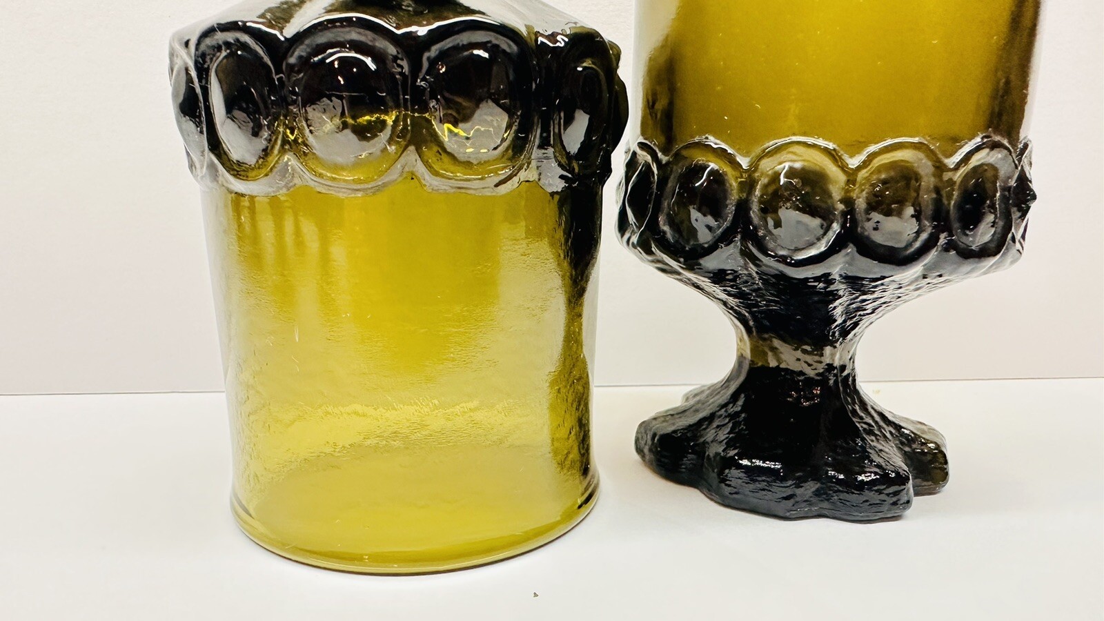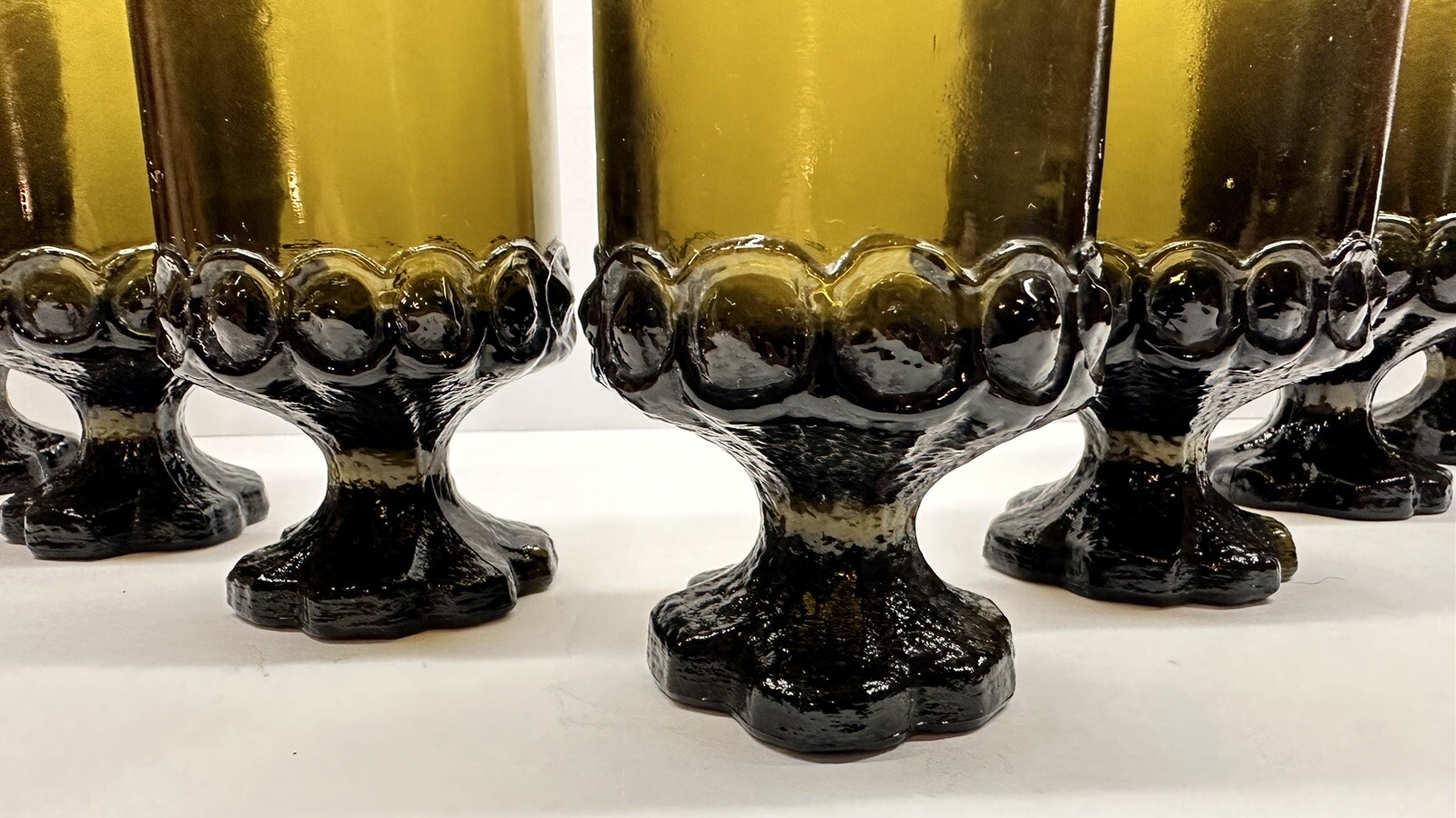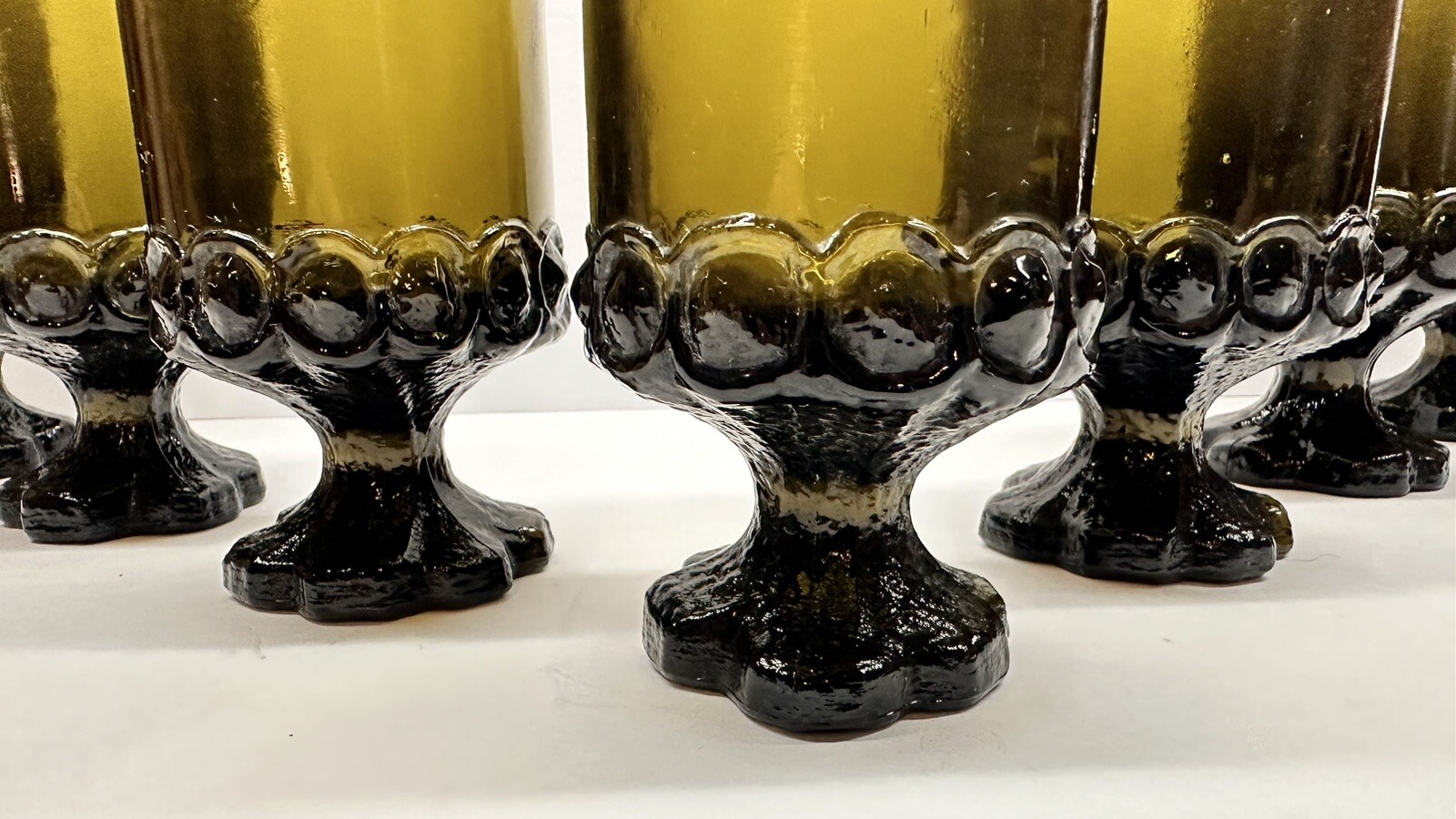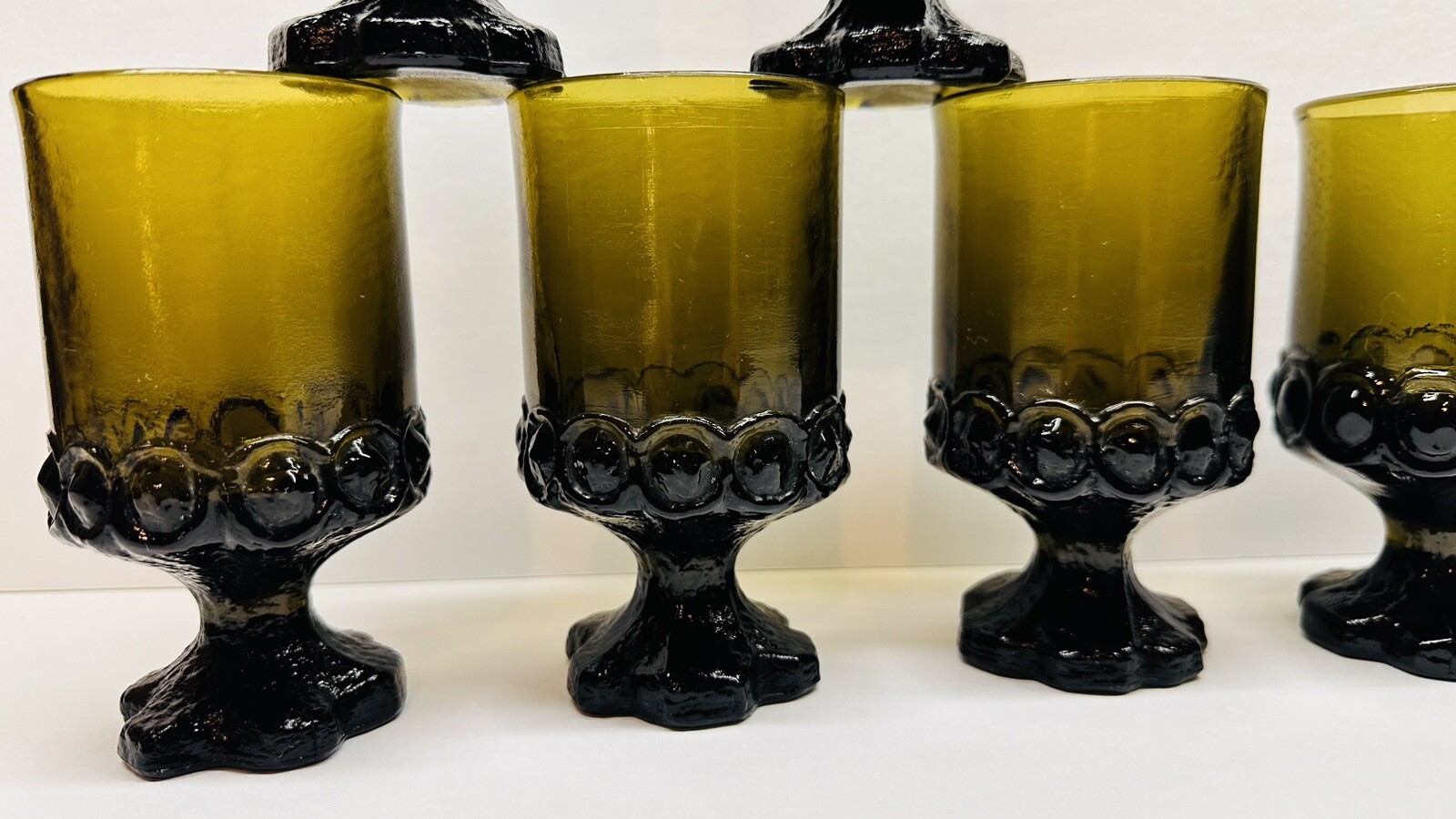 как выглядит Vintage Set Of 7 Olive Green Glass Tiffin Franciscan Madeira 6 Oz Goblets фото