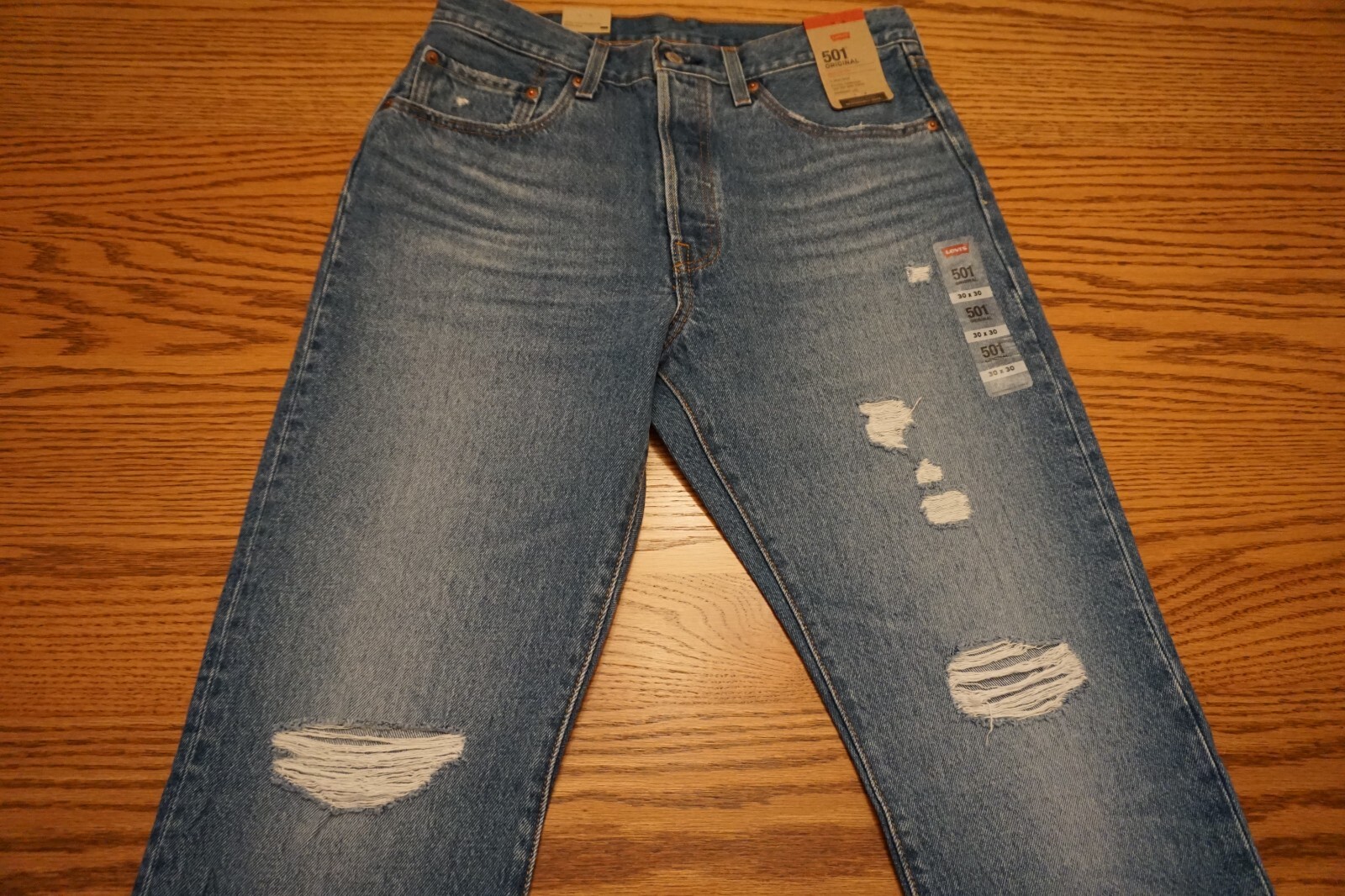 как выглядит NWT WOMENS LEVI JEANS 501 Original Multiple Sizes High Rise Straight Distressed фото