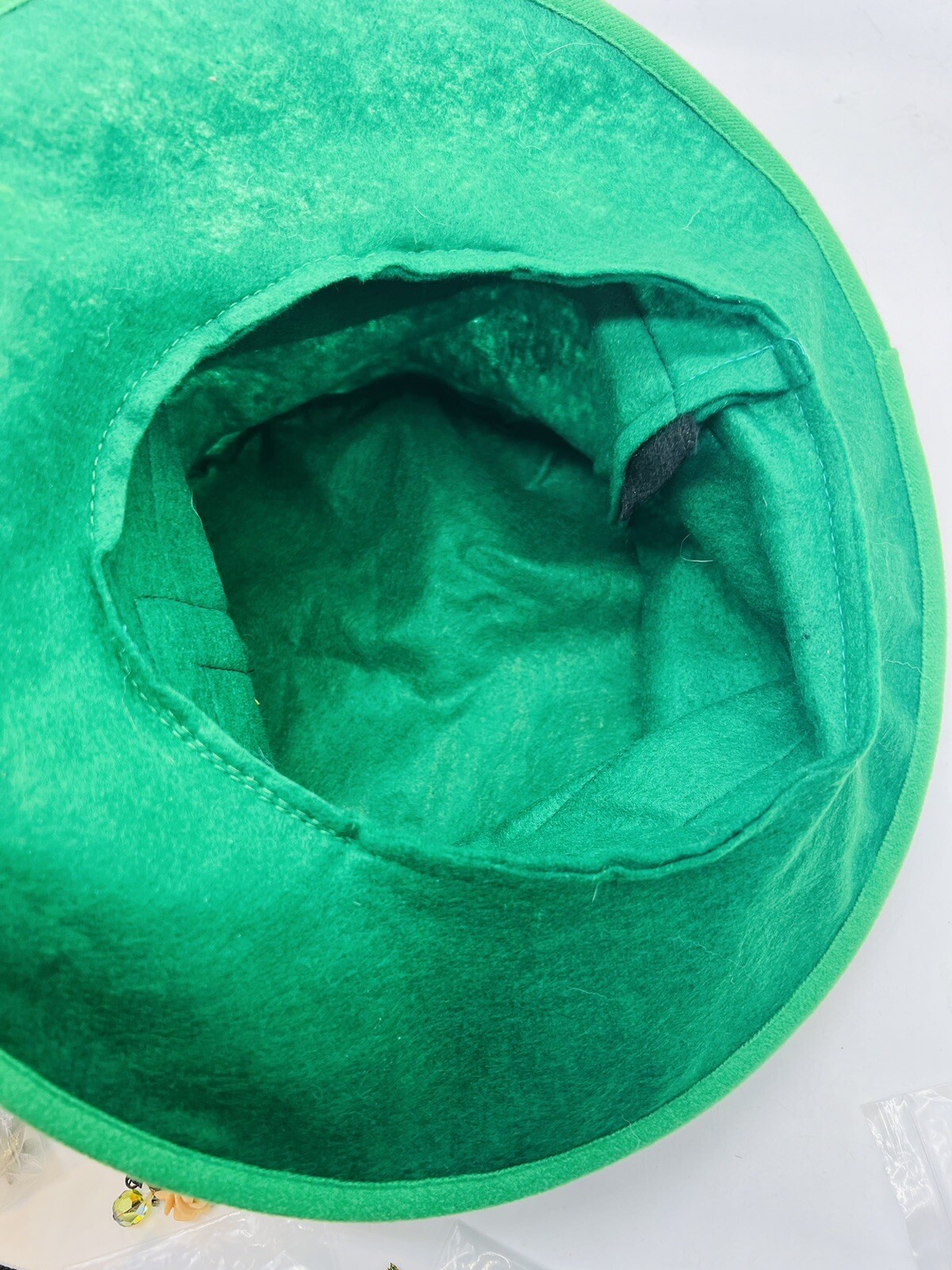 Vintage St. Patrick s Day Leprechaun Top Hat Large Green Felt NOS Large Sealed