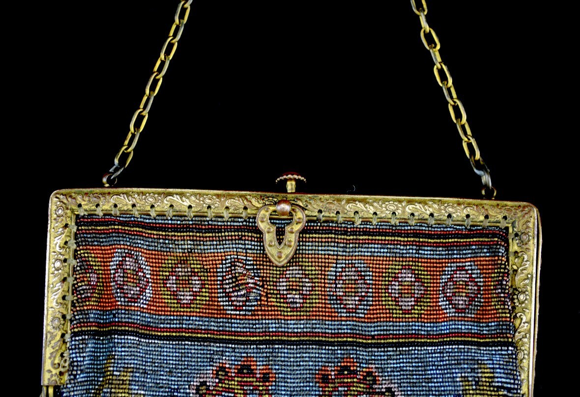 как выглядит Antique French Art Nouveau Micro Metallic Beaded Bag Fringe Silk Lining-Exclnt фото