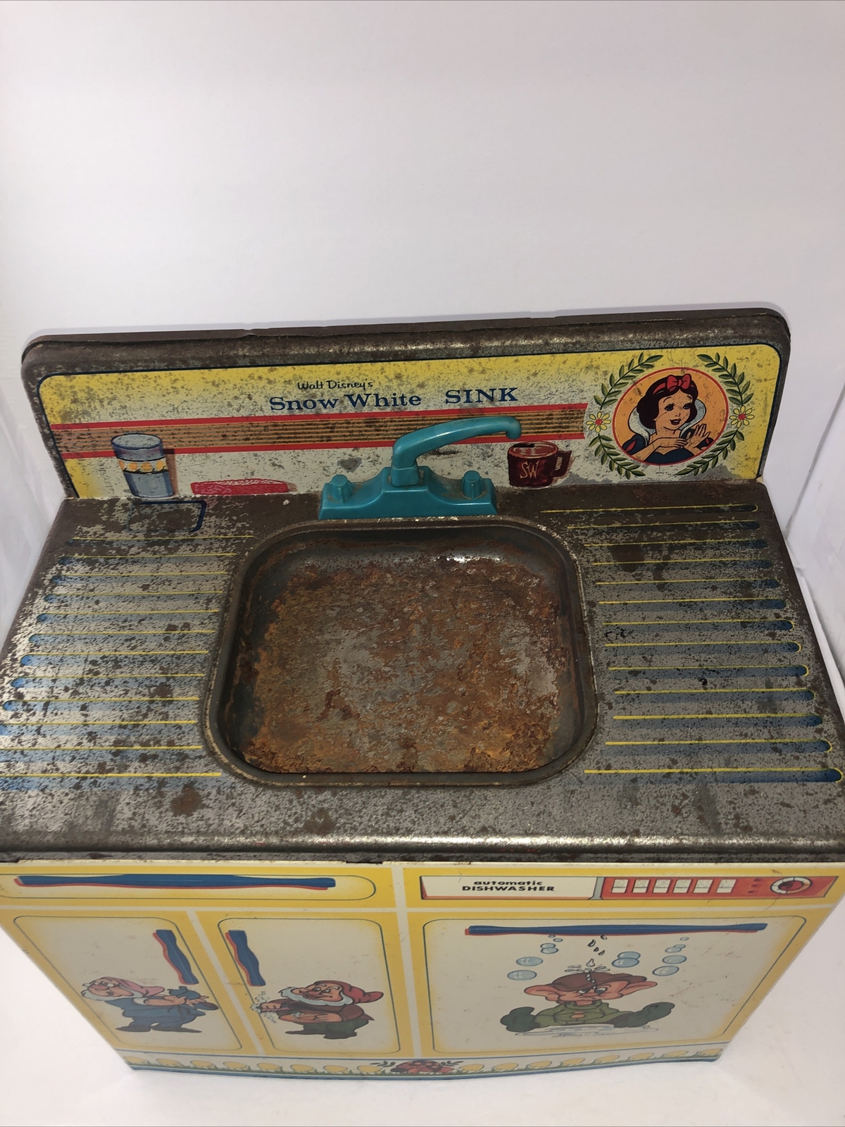 Vintage,Wolverine Toy,Disney Productions Snow White, SINK, Tin Litho