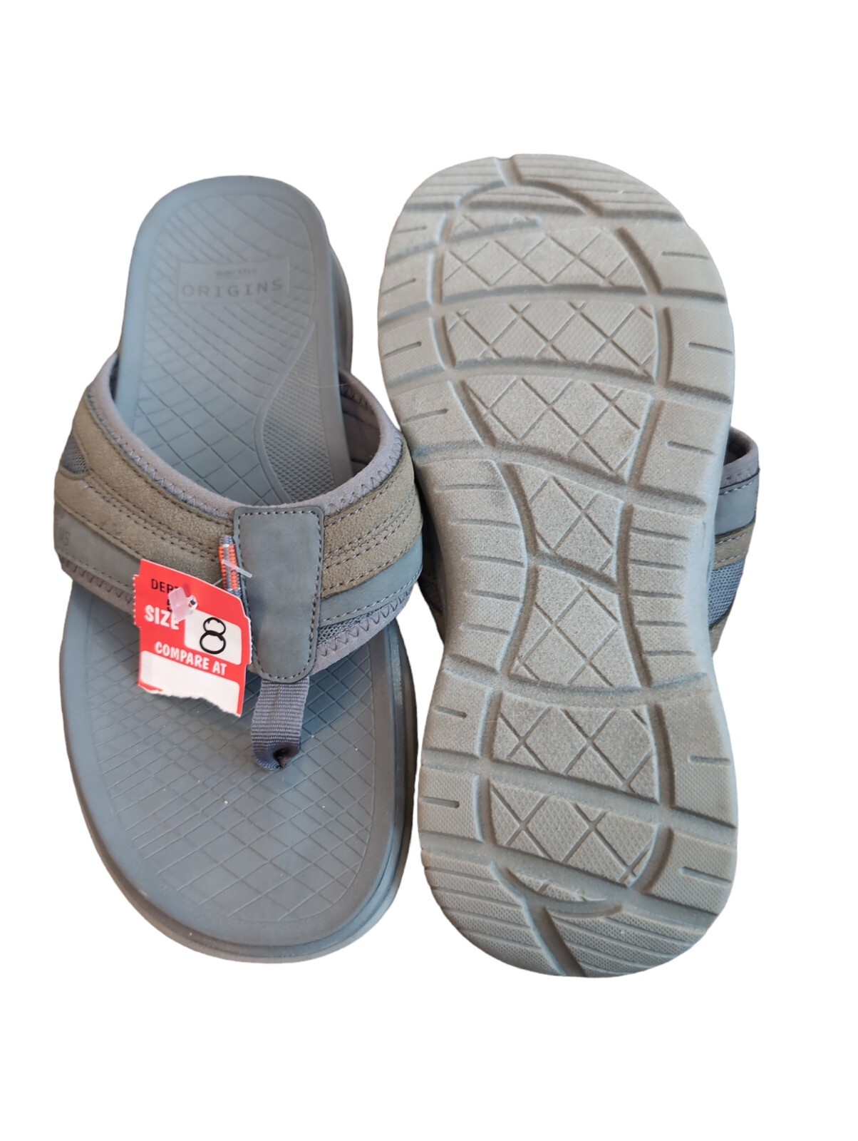 Earth Origins Boyd Mens Gray/Brown Sport Comfort Flip Flop Thong Sandals Sz 8 M