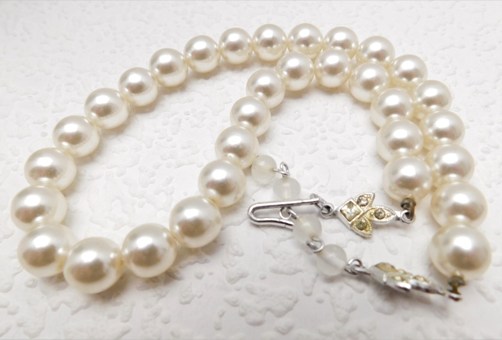 как выглядит VINTAGE RHINESTONE FAUX PEARL JAPAN NECKLACE 16" фото