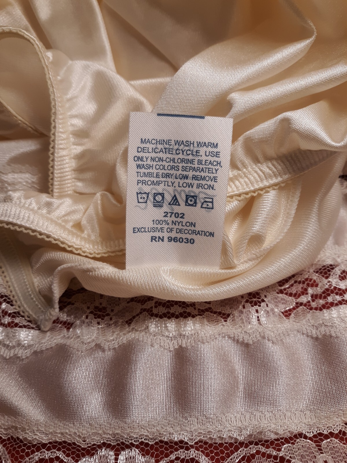 как выглядит New Vintage Cream Velrose Nylon Half Slip 27" Long Lace Trim USA Plus Sz Large фото