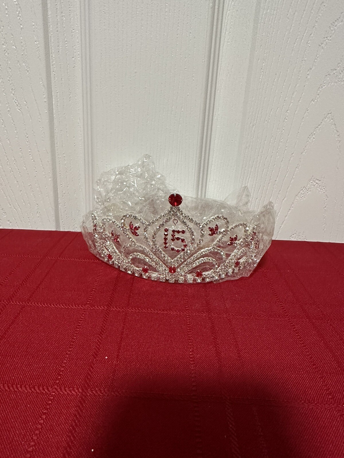 Red/Pink/Blue Rhinestone Sweet 15/16 Tiara Quince Crown with Charm