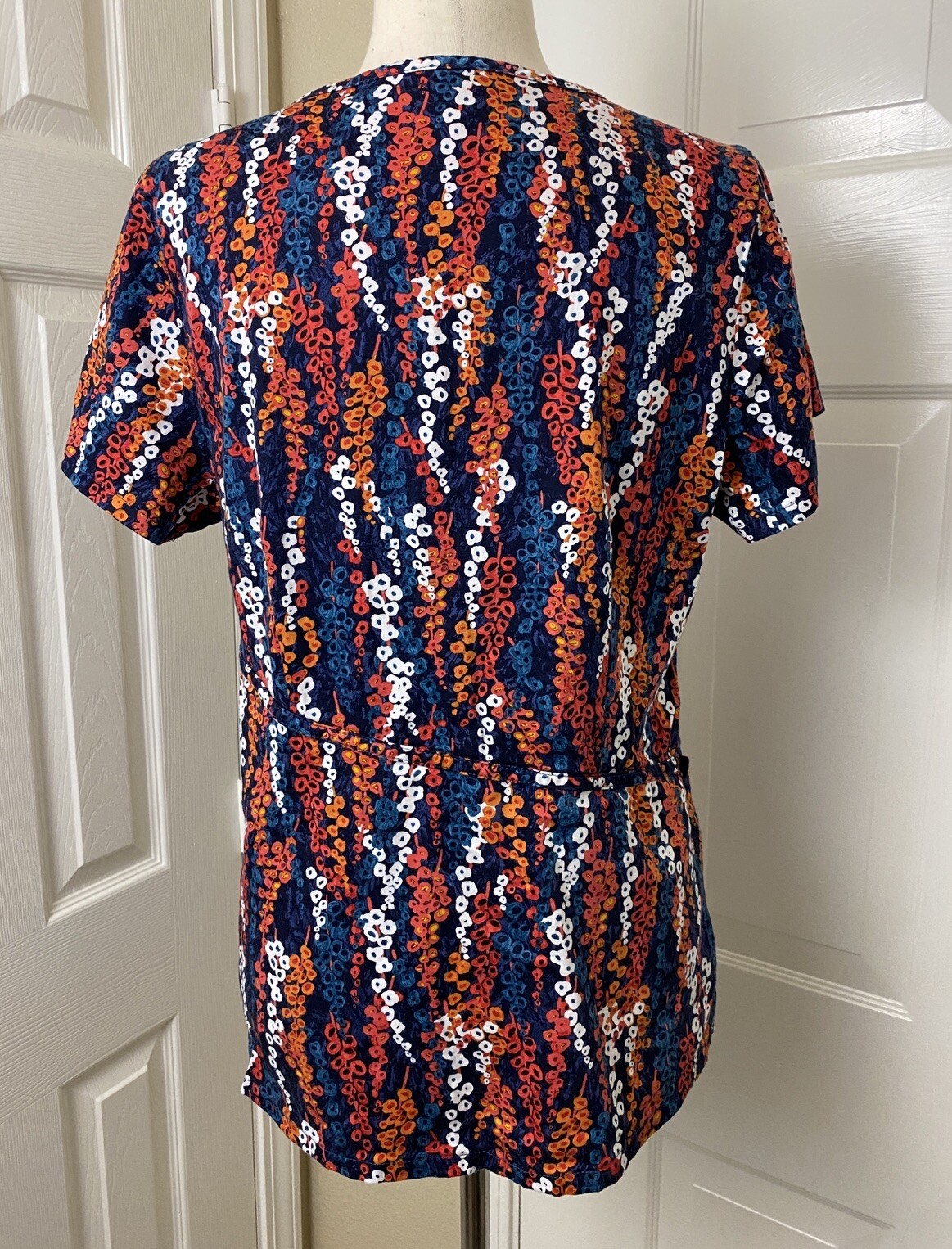 Urbane Womens Medical Scrub Top Size Medium Blue Orange Uniform Shirt