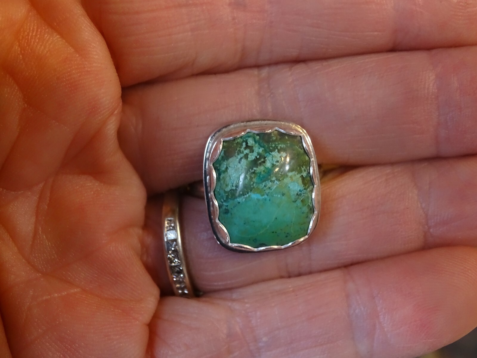BEAUTIFUL HANDMADE SOLID STERLING SILVER CHRYSOCOLLA RING. SIZE 8 ..17.0 X 16.2