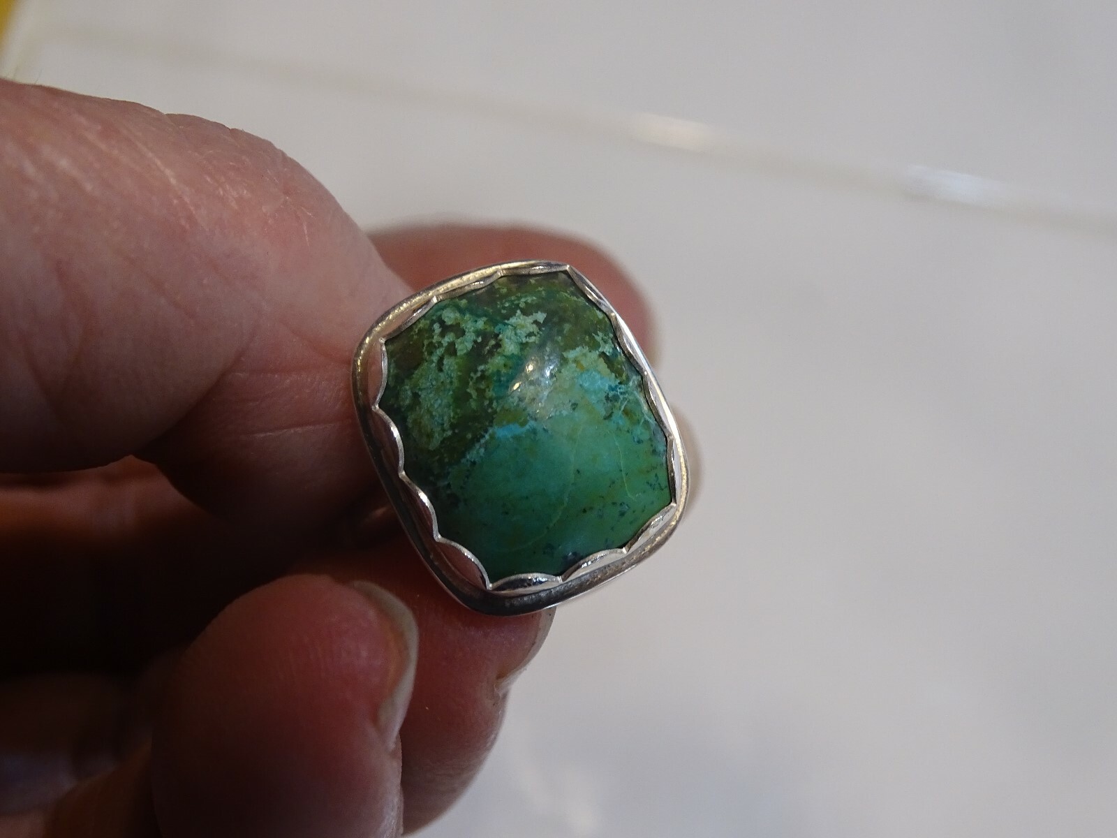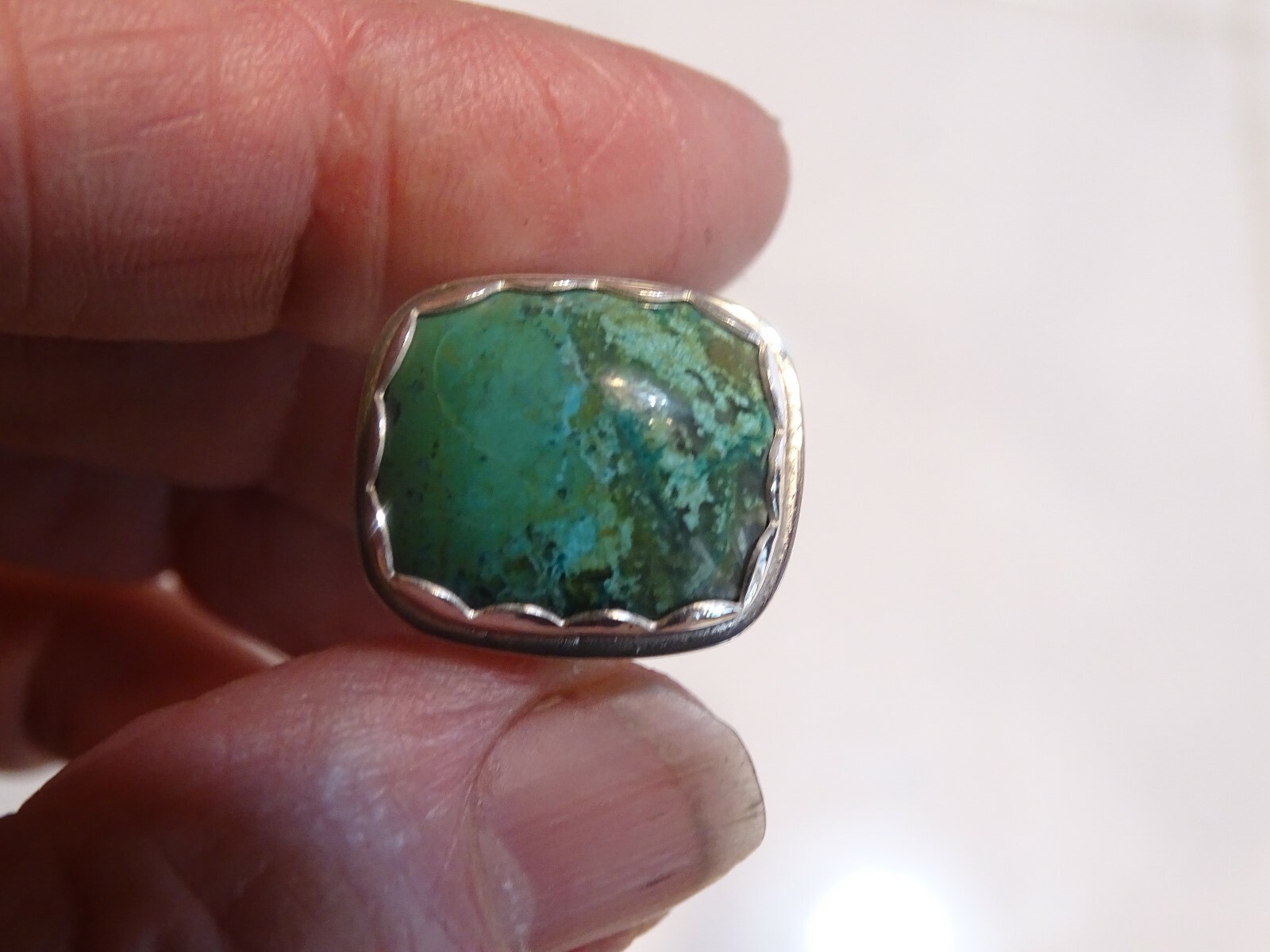 как выглядит BEAUTIFUL HANDMADE SOLID STERLING SILVER CHRYSOCOLLA RING. SIZE 8 ..17.0 X 16.2 фото