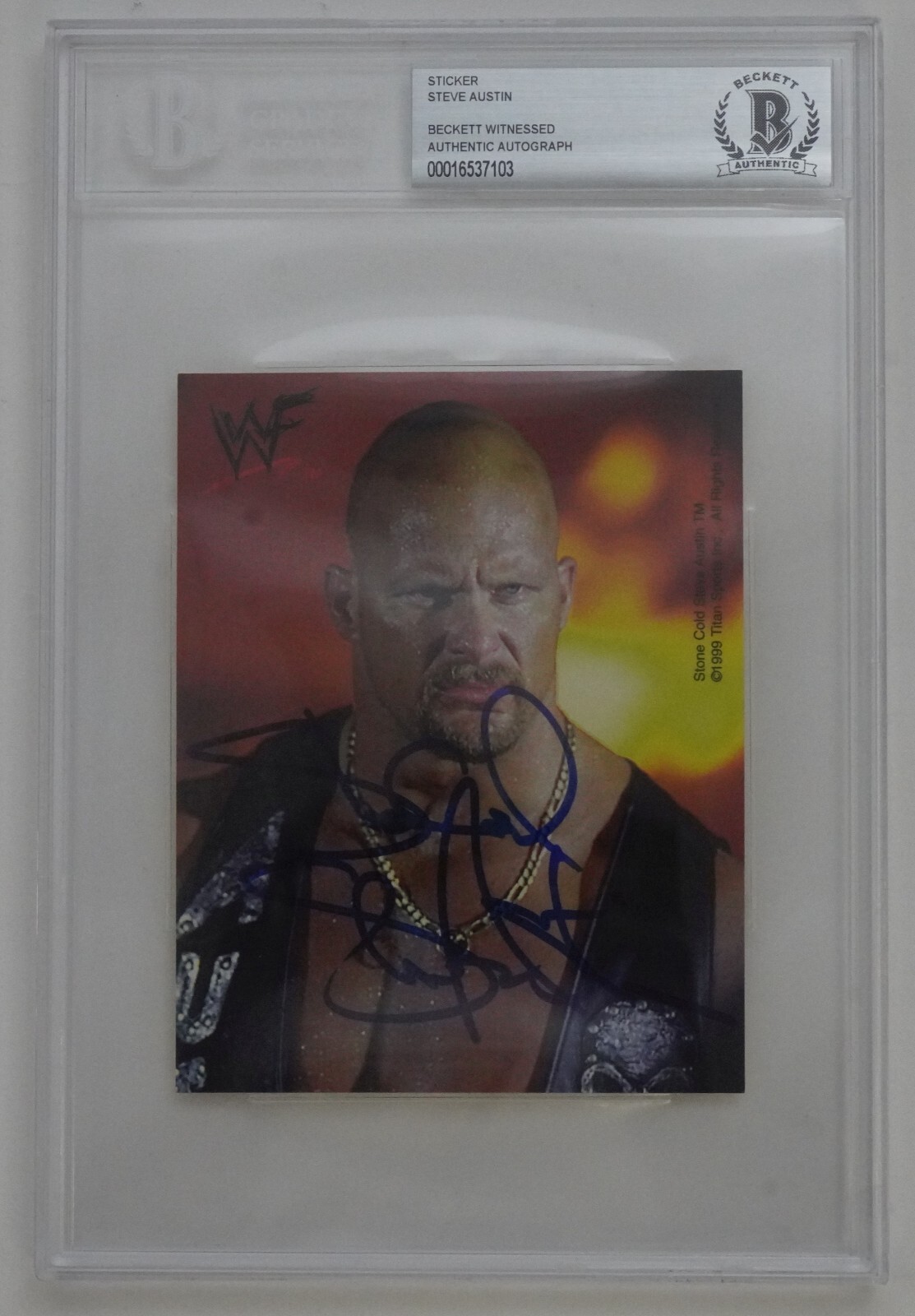 • Stone Cold Steve Austin Signed 1999 Artbox WWF Super Size Stickers BAS COA WWE 3