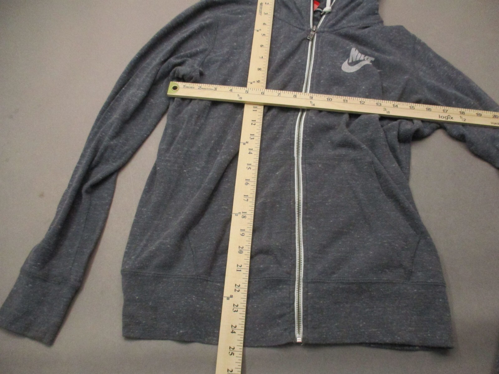 как выглядит NIKE Size L Womens Gray Organic Cotton Blend Full Zip Pocket Athletic Jacket 300 фото