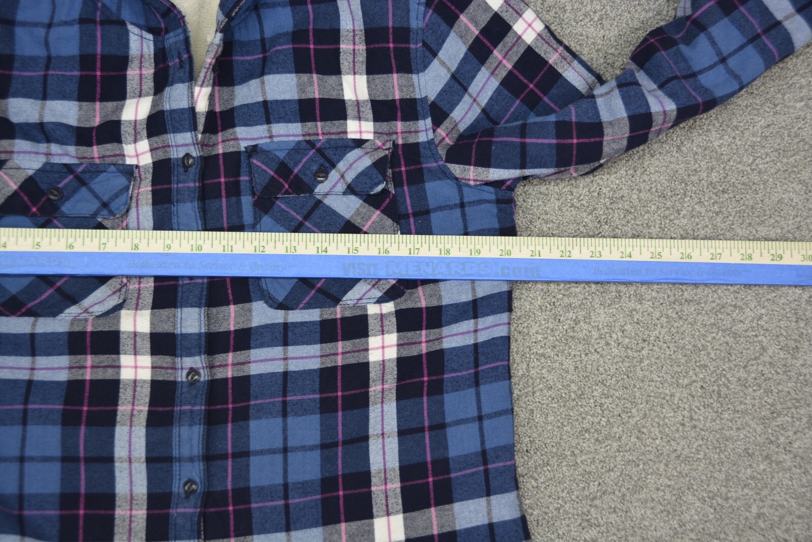 как выглядит Boston Traders Button Up Flannel With Hood Womens Large Blue Plaid Insulated фото