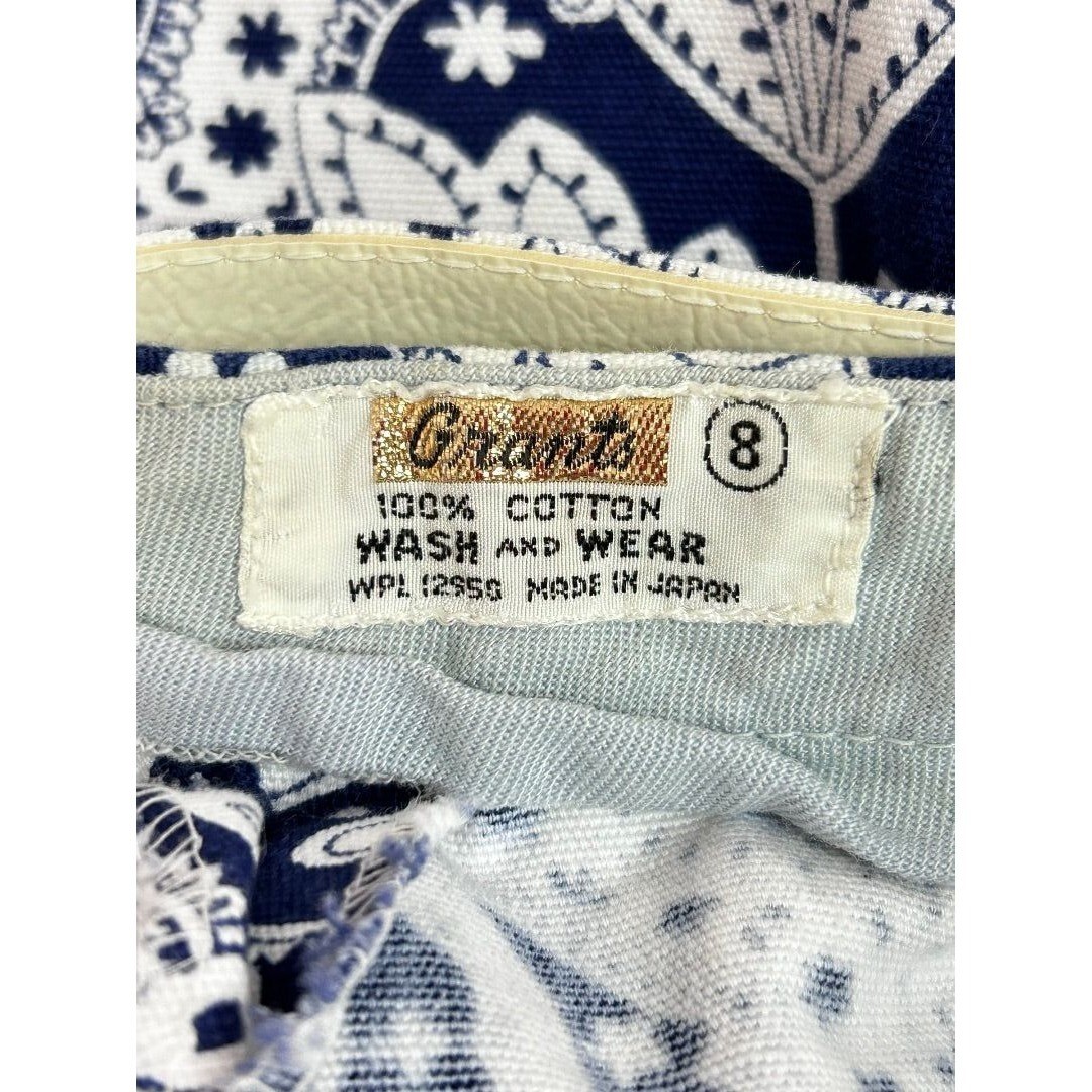 Grants Wash n Wear Women's Vintage 1960s Blue Floral Print Shorts Belt Japan