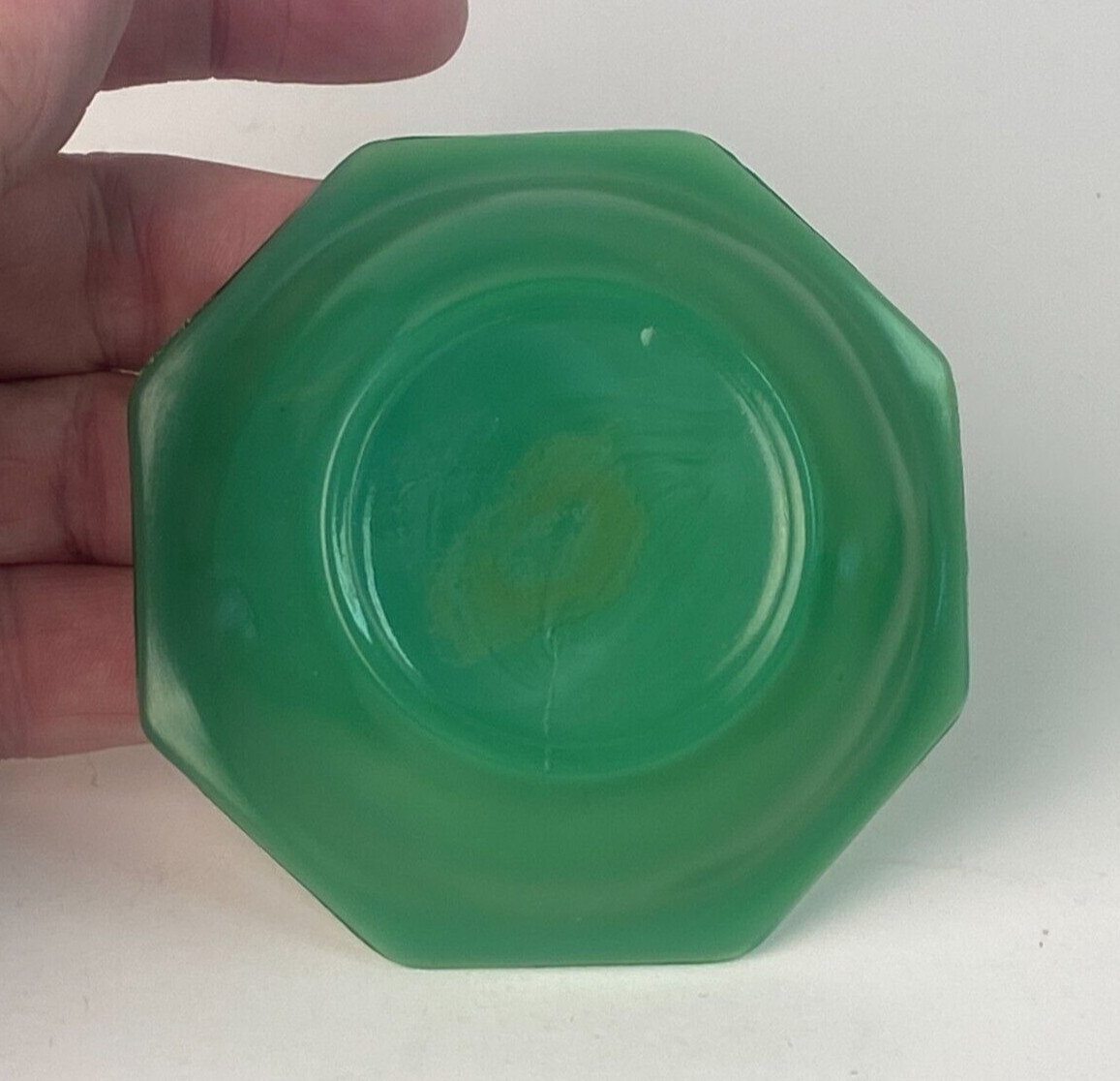 Akro Agate Tea Set Green Octagonal Bowl 3-7/16 x 7/8 Deep