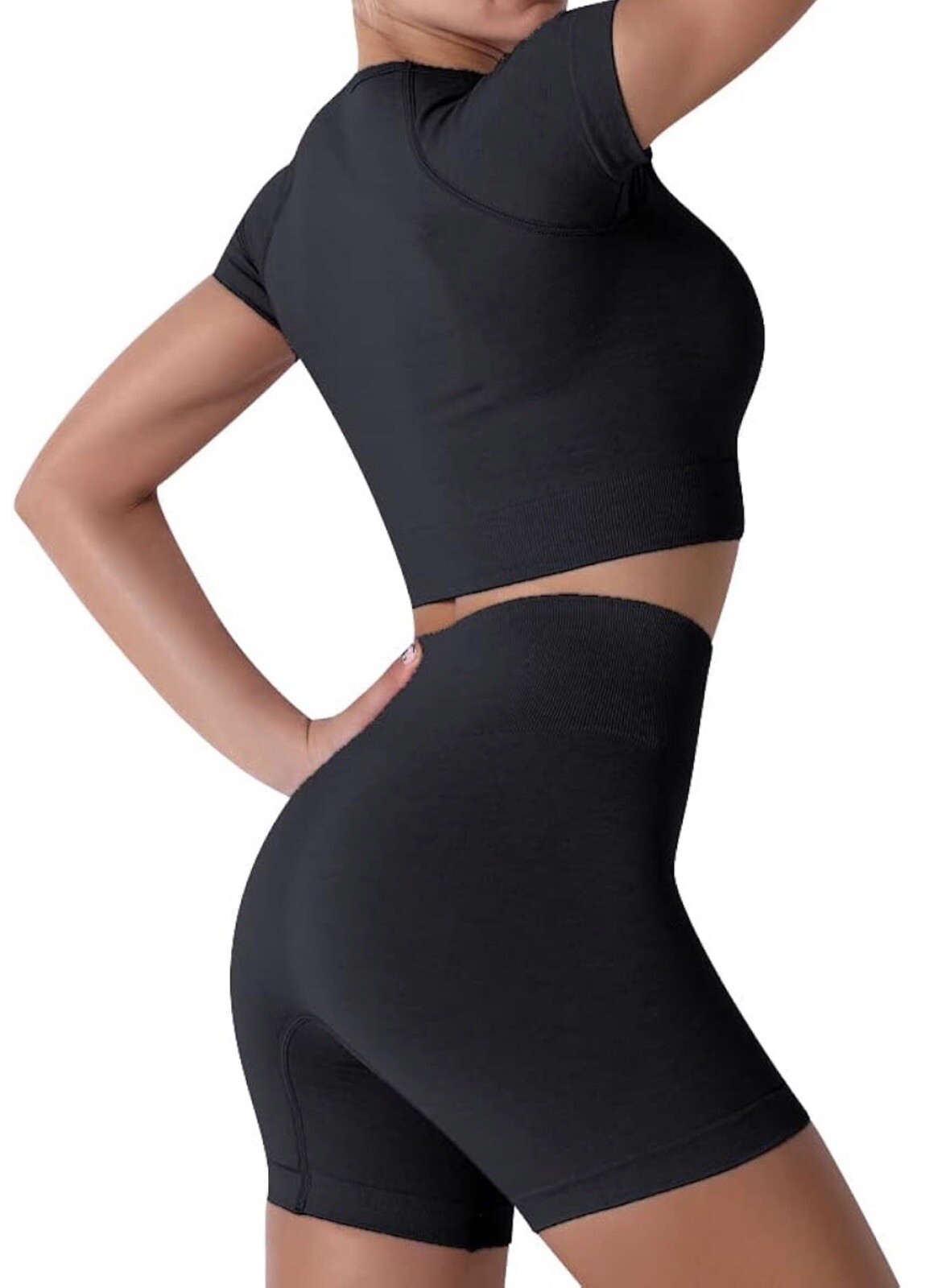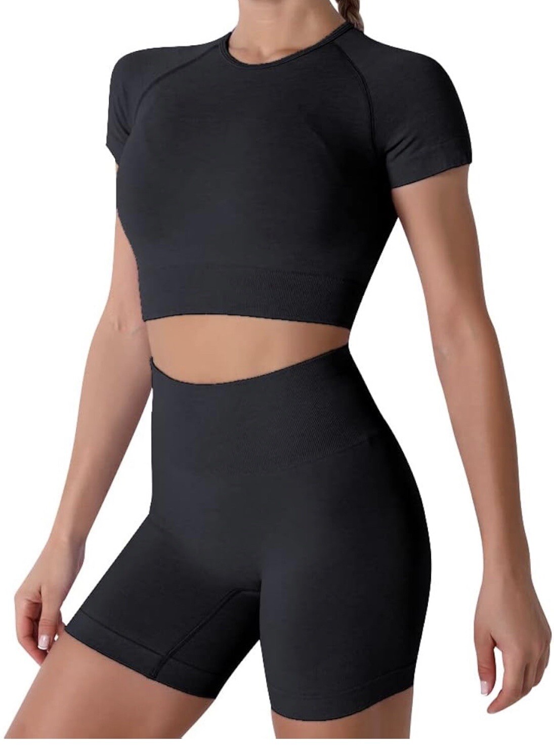 как выглядит Workout Set Size Small New Black Crop Shirt High Waisted Shorts фото