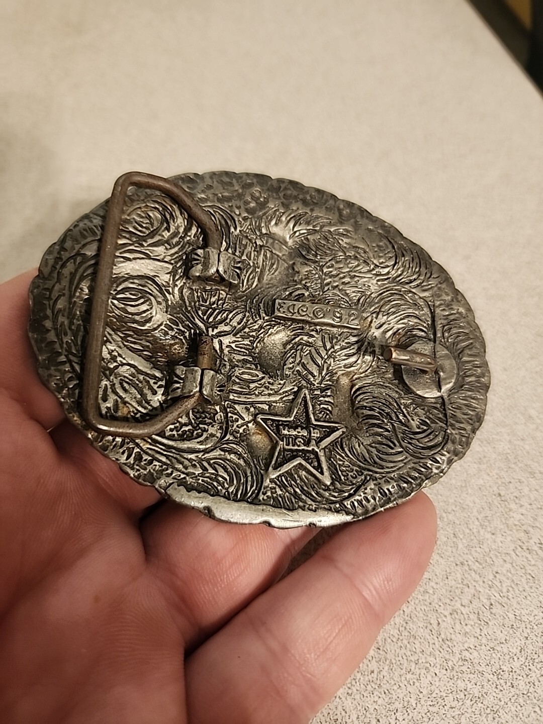 Vtg EGE 1992 Pewter Rodeo Western Belt Buckle Made In USA