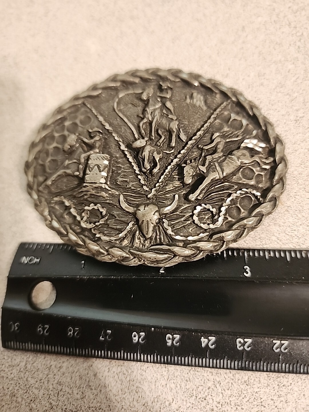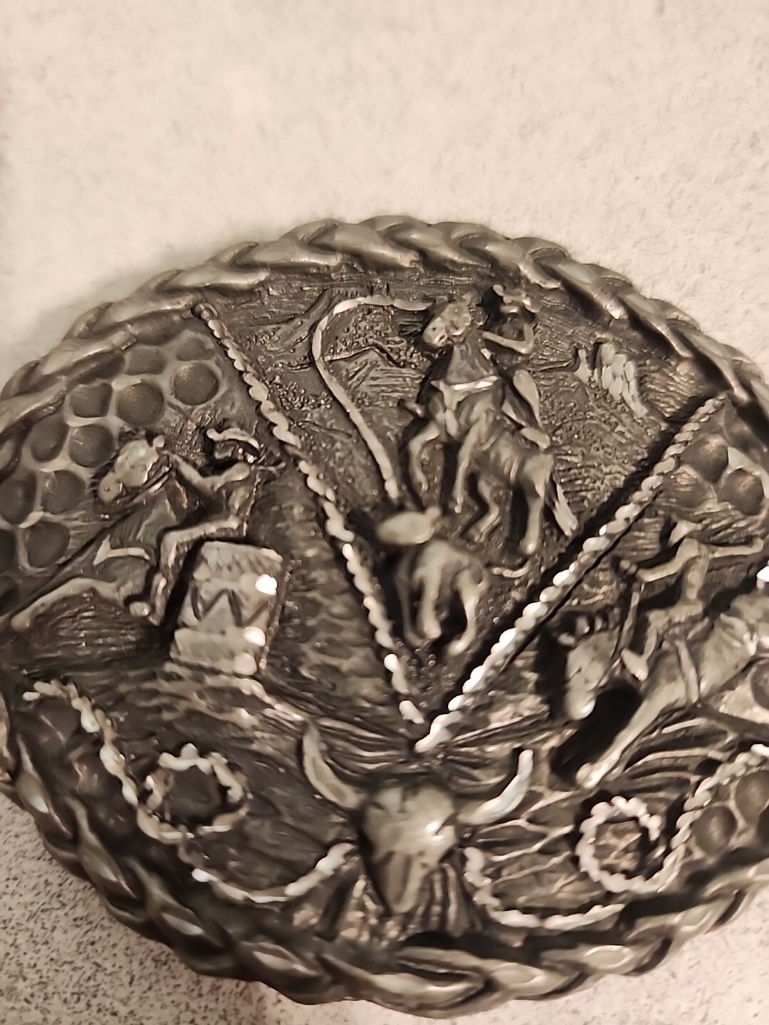 как выглядит Vtg EGE 1992 Pewter Rodeo Western Belt Buckle Made In USA фото