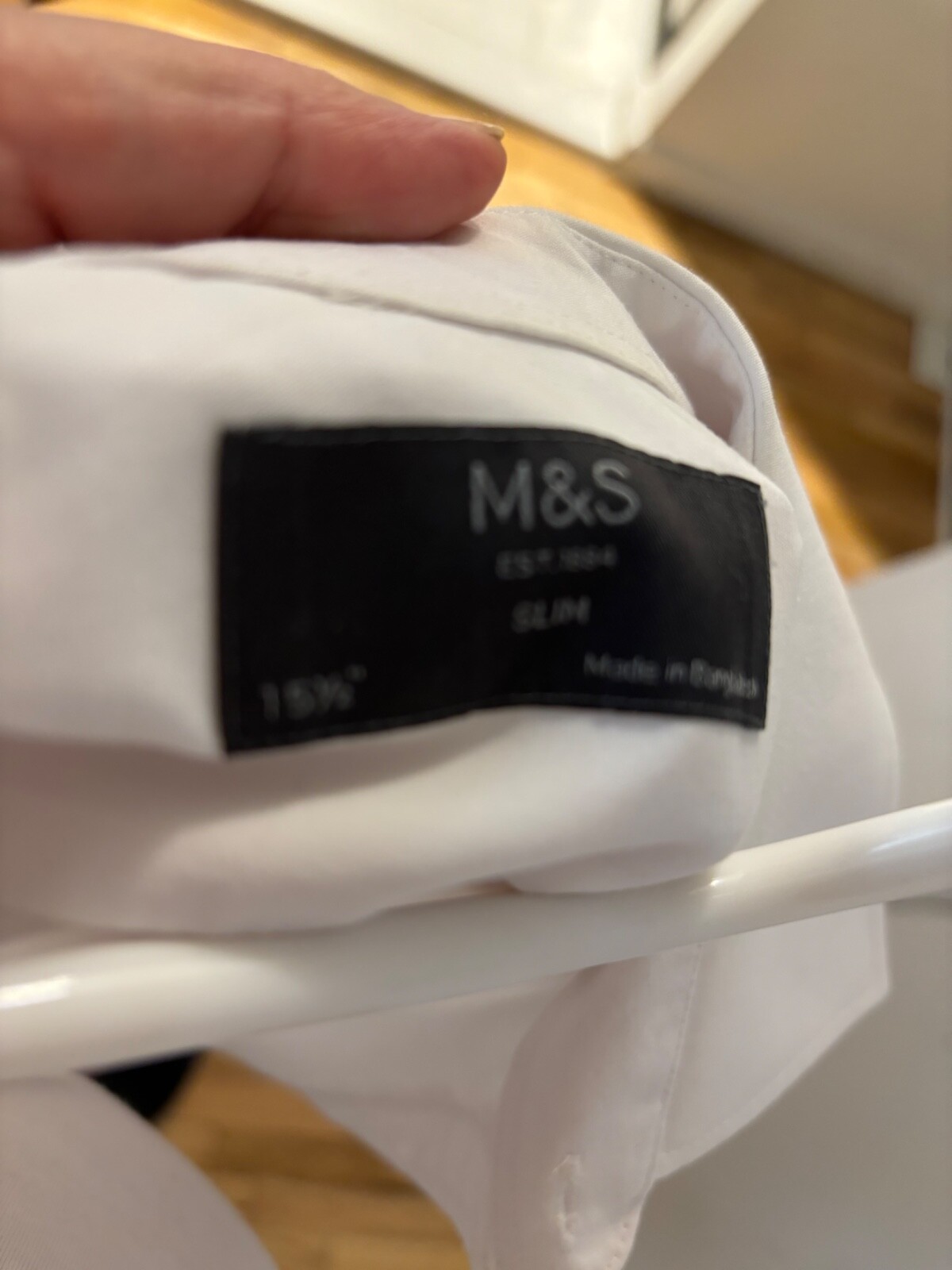 как выглядит Marks Spencer Slim Fit White Mens Shirt size 15.5 фото