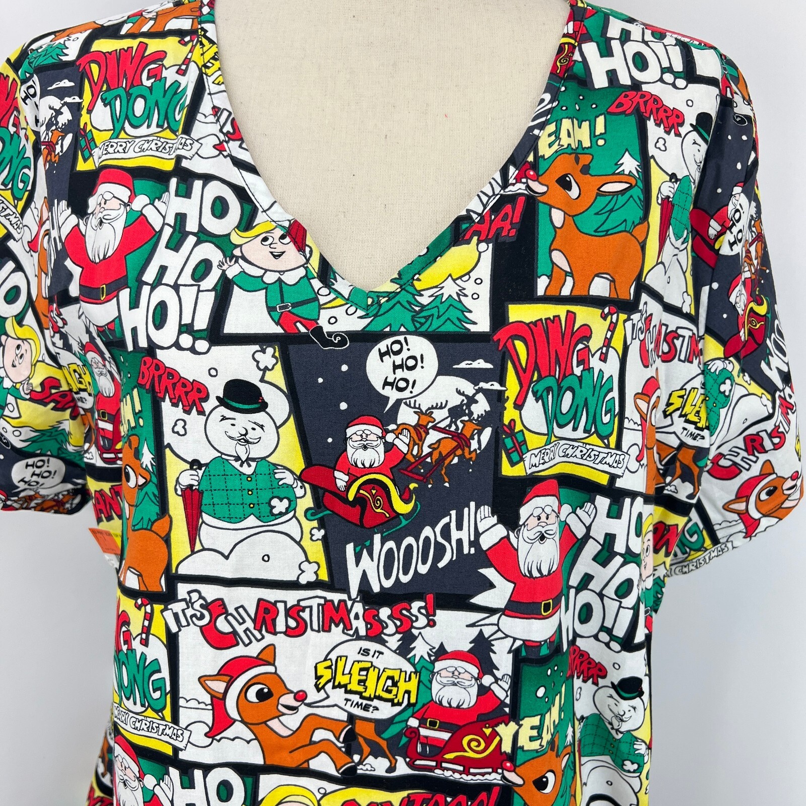 Rudolph The Red Nosed Reindeer XL Women Christmas Holiday Scrub Top Santa Hermey