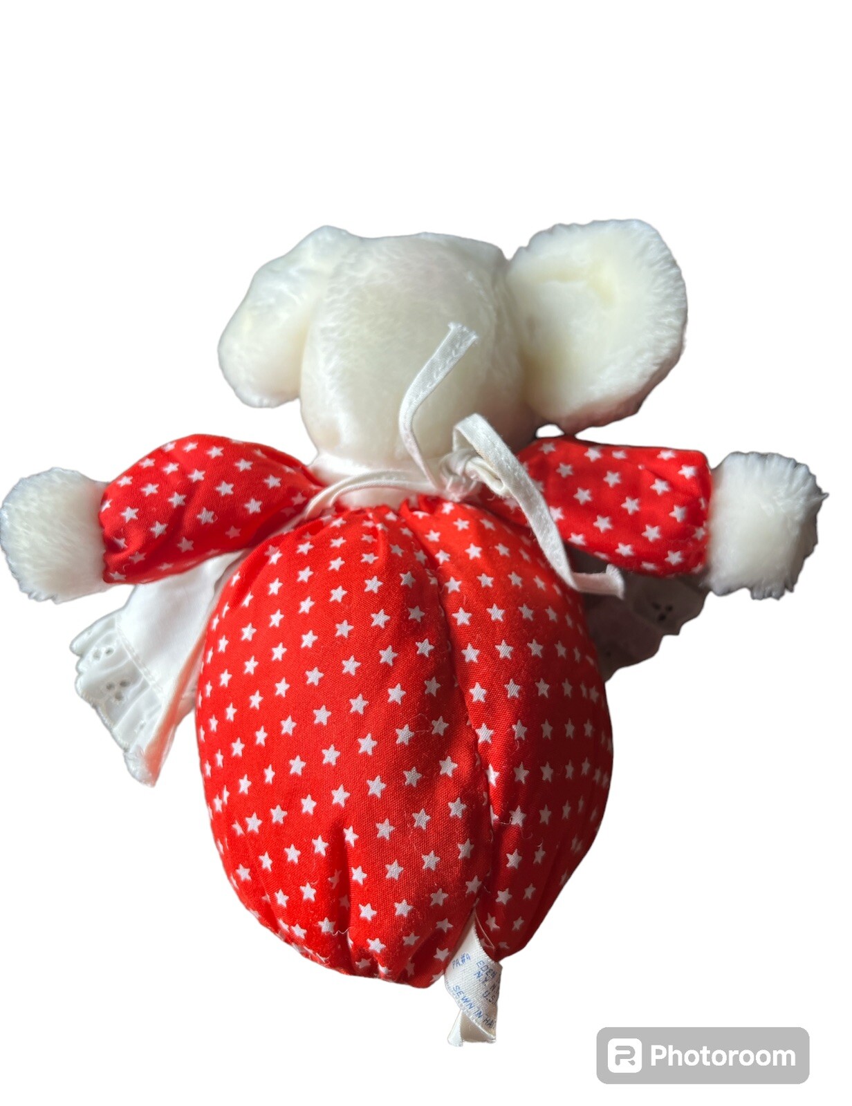 как выглядит Vintage Eden Mouse Red Polka Dot White Apron Rattle Stuffed Lovey Plush 8 фото