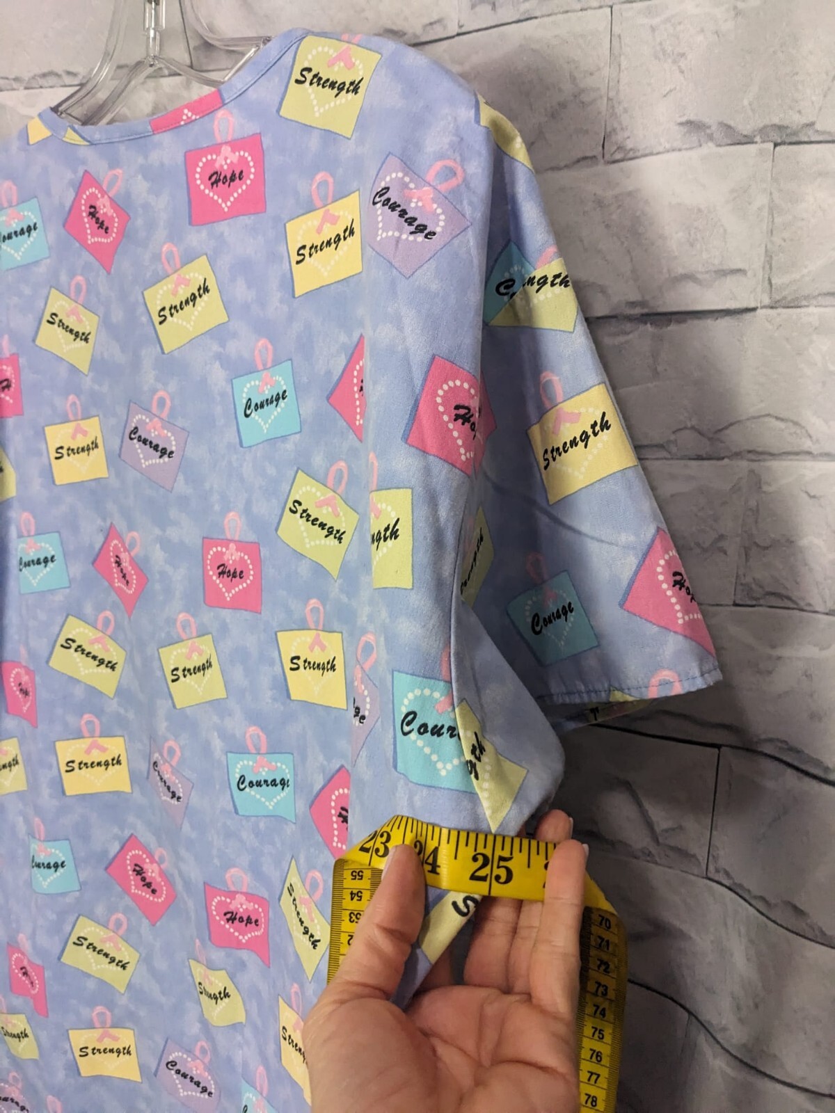 Crest Women's Periwinkle V-neck Breast Cancer, Medical Scrub Tshirts Sz L