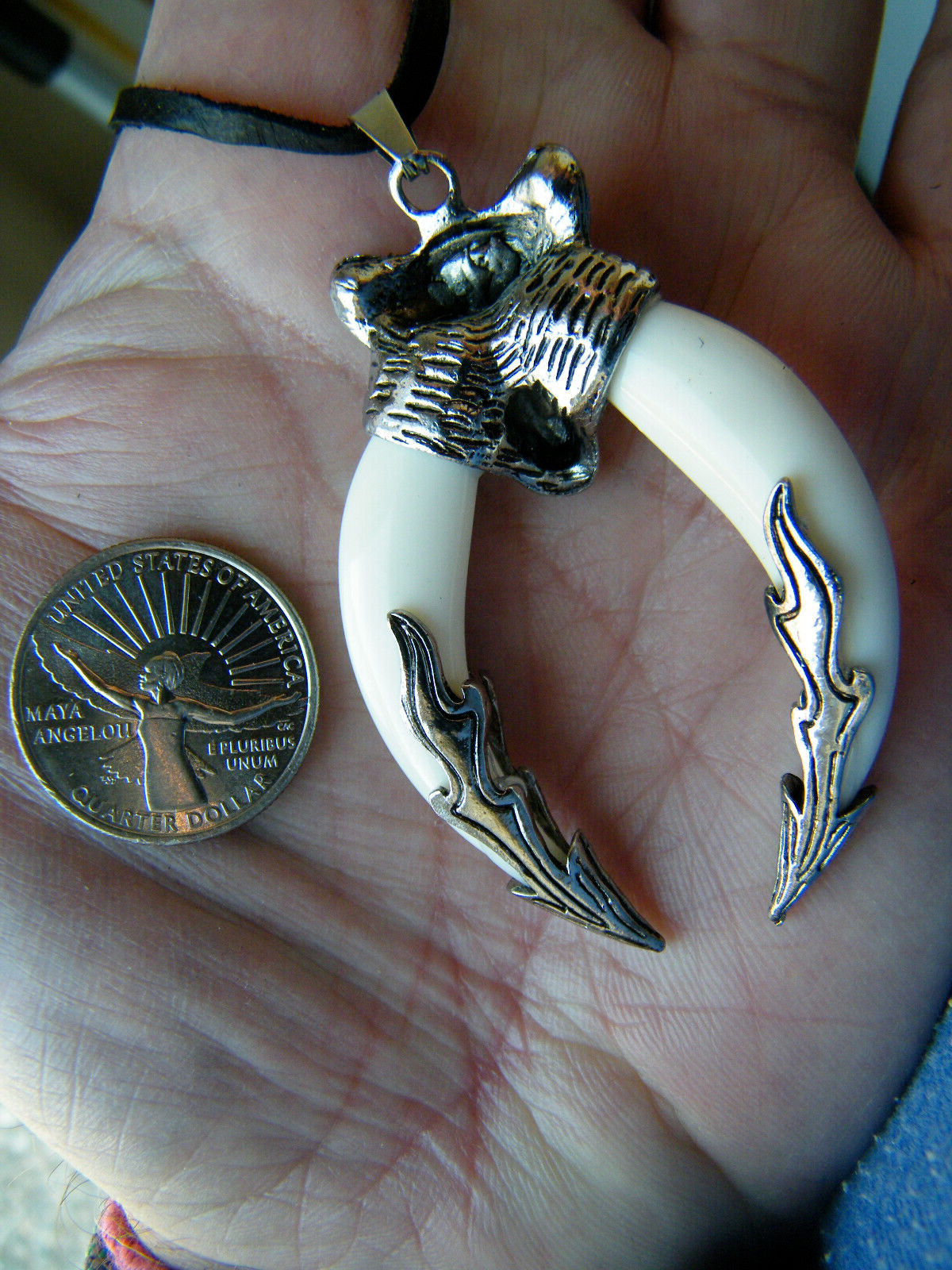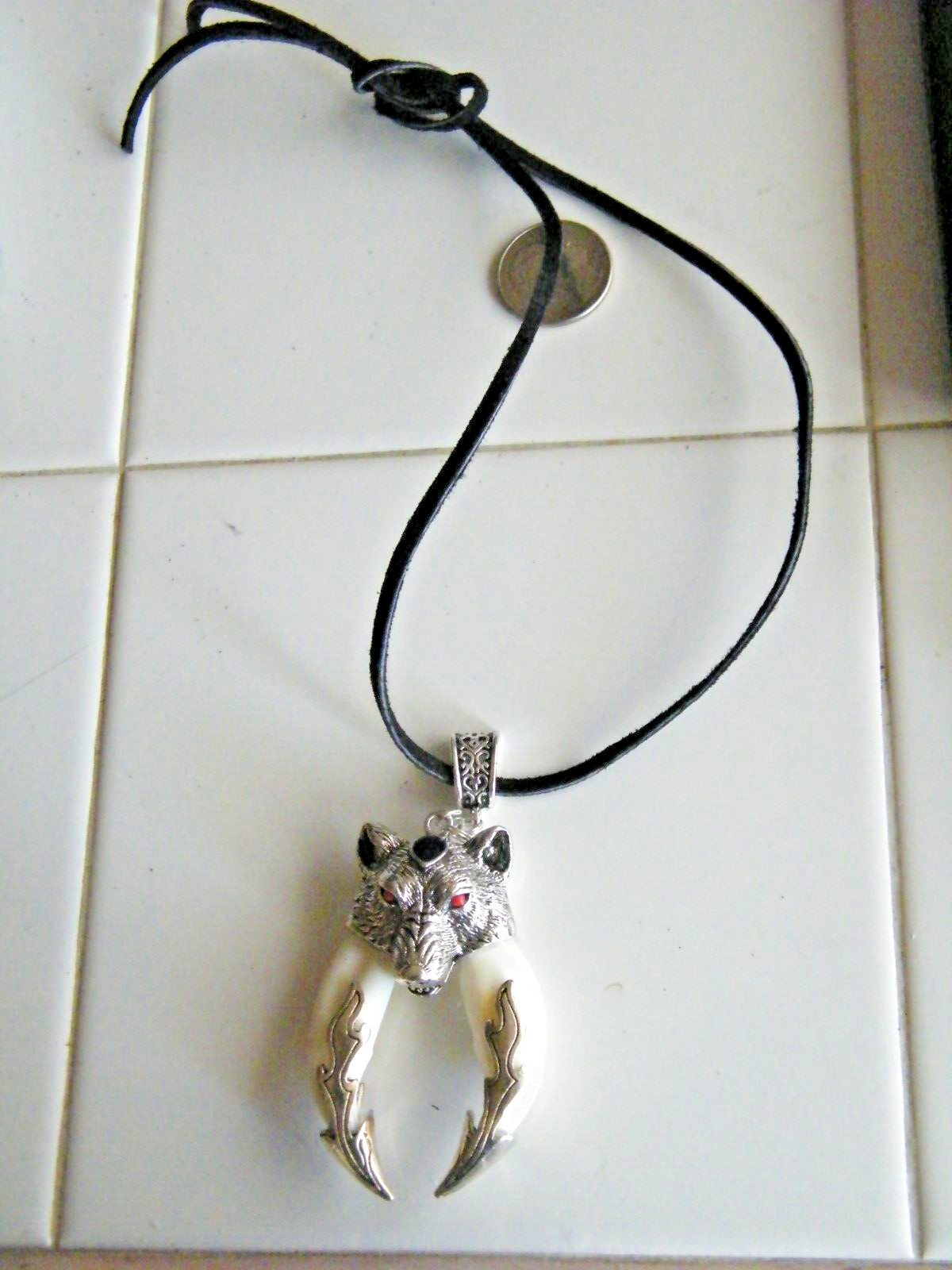 Coyote Necklace 2 White ResinTeeth Amult Real Black Leather Kid Size 14-27 NEW