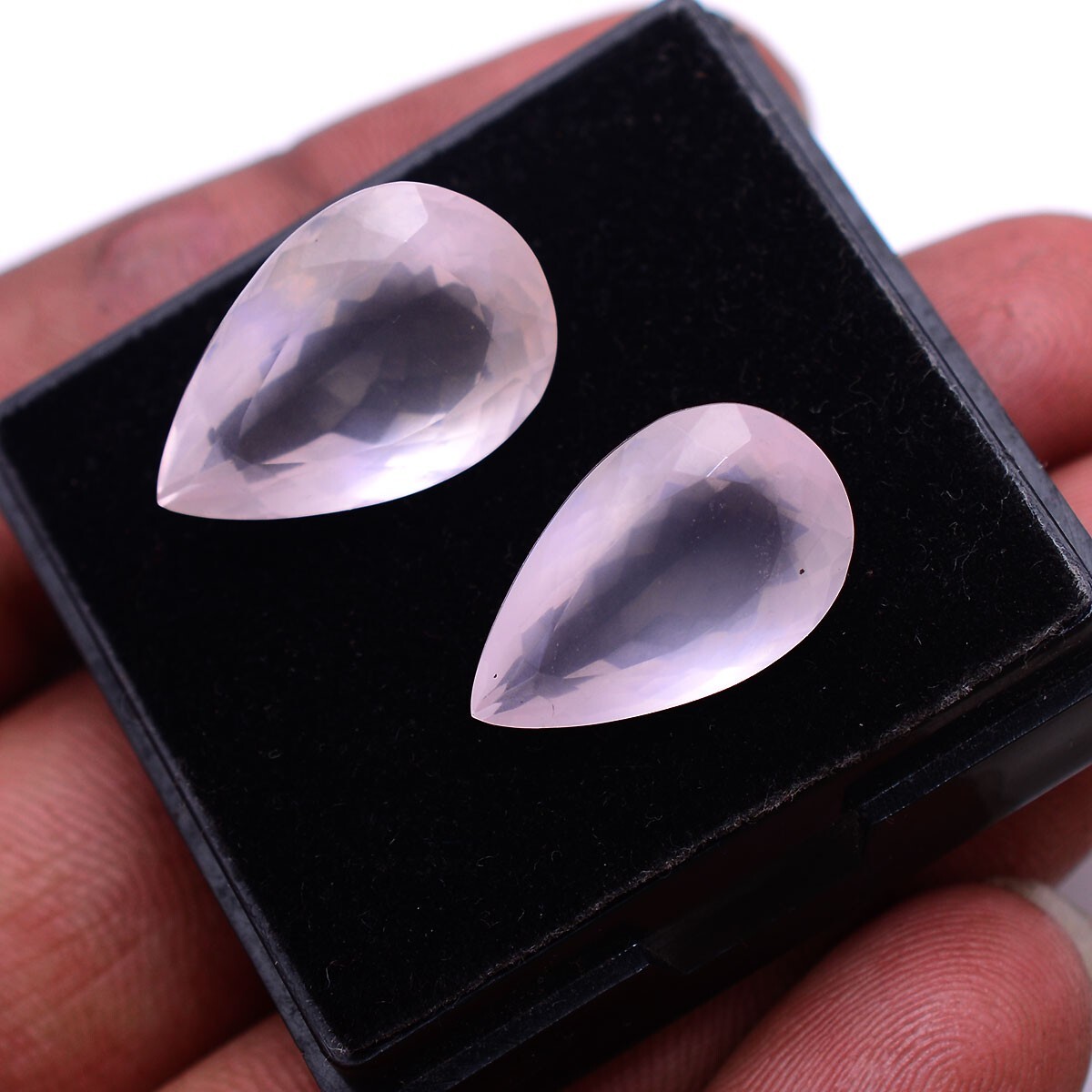 2 Pcs Natural Rose Quartz 19mm-20mm Pear Faceted Cut Top Quality Loose Gemstones