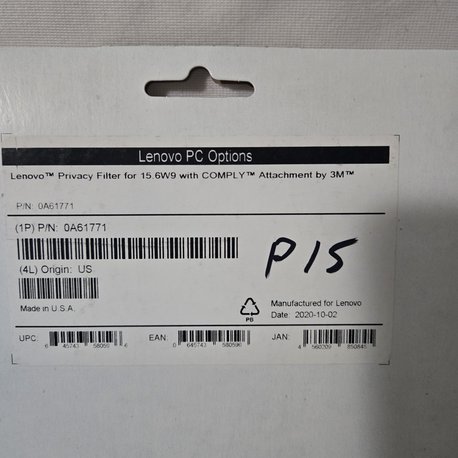как выглядит Sealed Lenovo 3M 15.6 inch W9 Laptop Privacy Filter 0A61771 Authentic Accessory фото