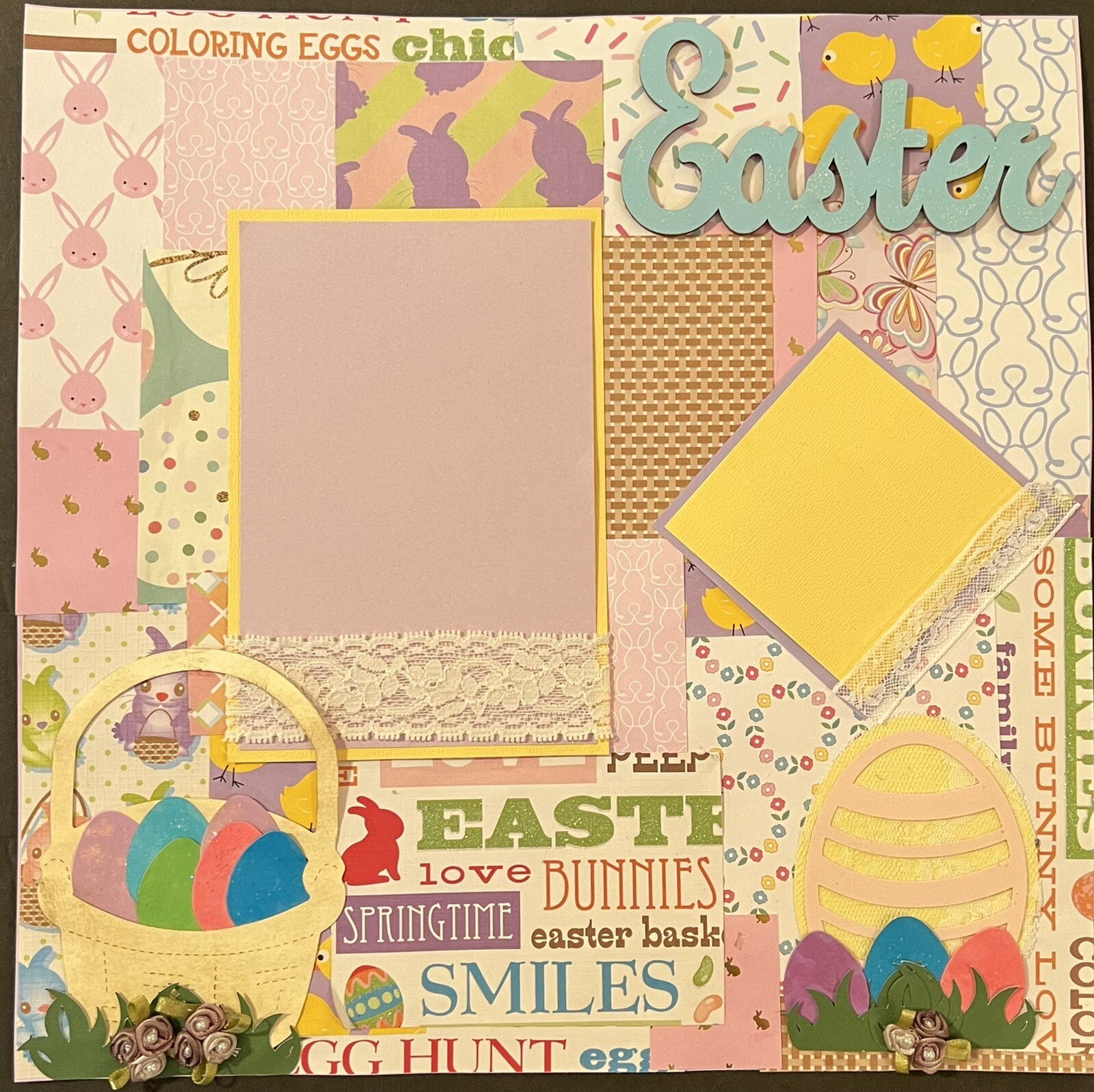 12X12 EASTER MIXED MEDIA PREMADE SCRAPBOOK PAGE JUNK JOURNAL INSPIRED TONYA 4420