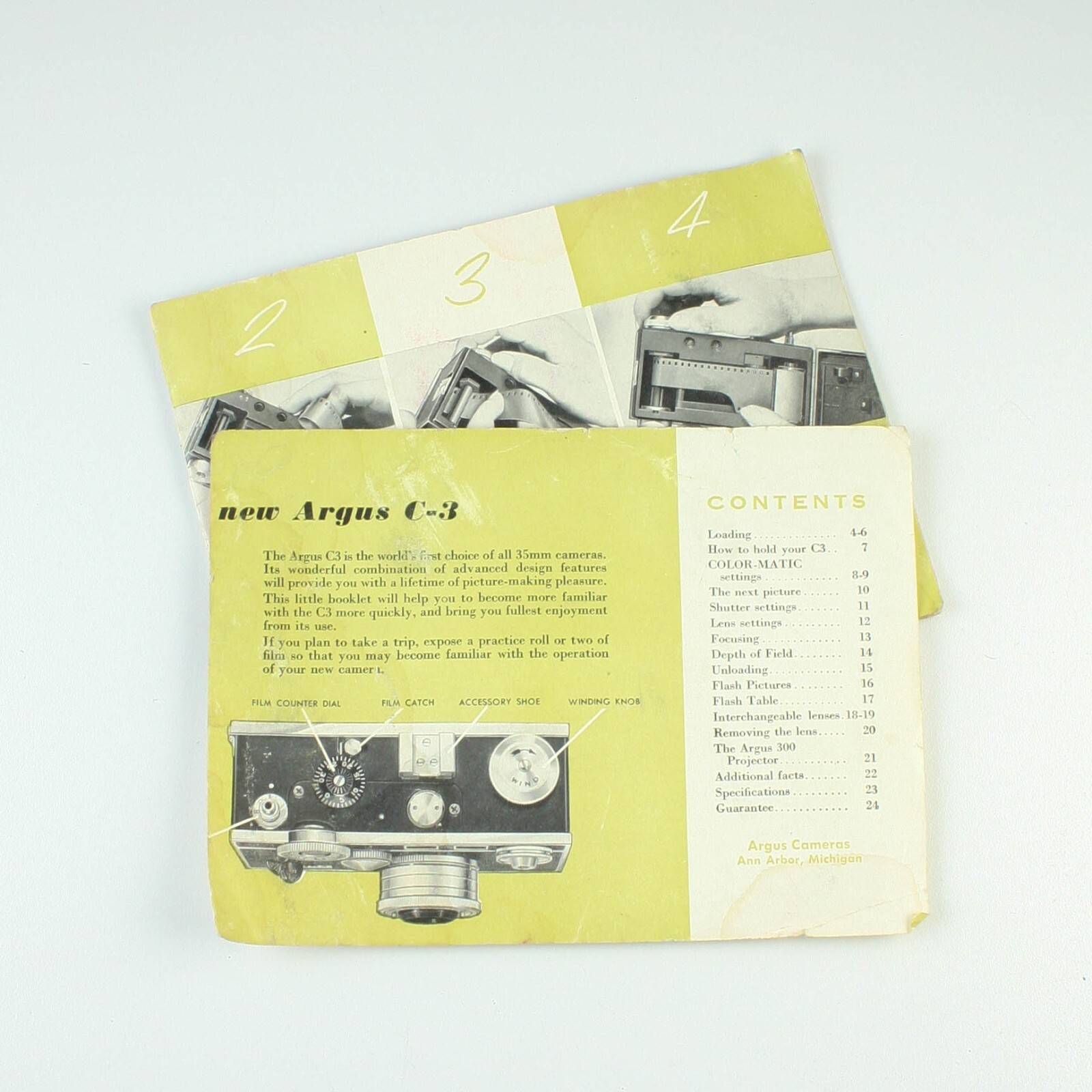 Set of 2 Argus C3 - Camera Instructions - Vintage Manuals - Damaged