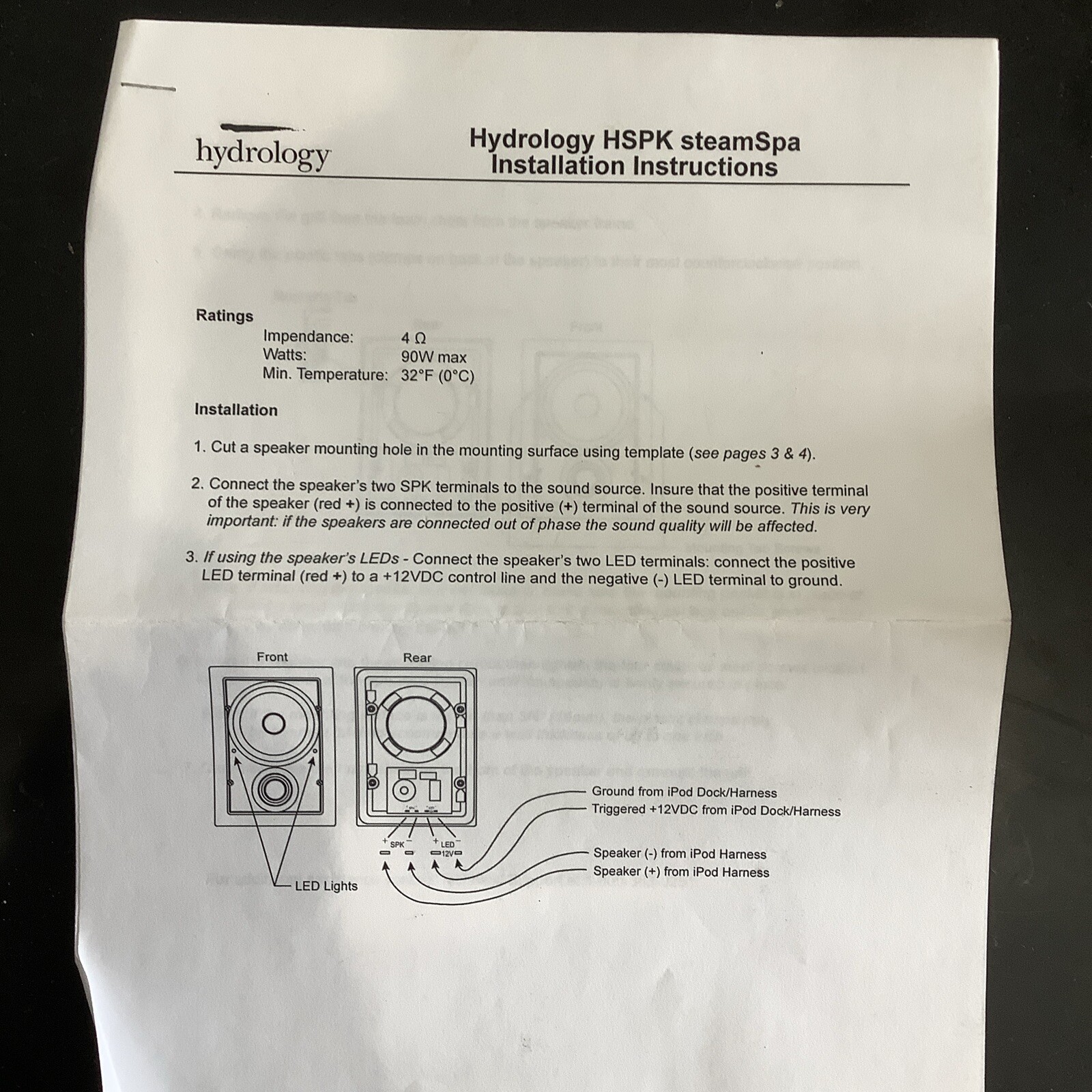 Hydrology steamSpa 2-way Shower Speakers. Flush-Mount Waterproof. 9252-0305. G6