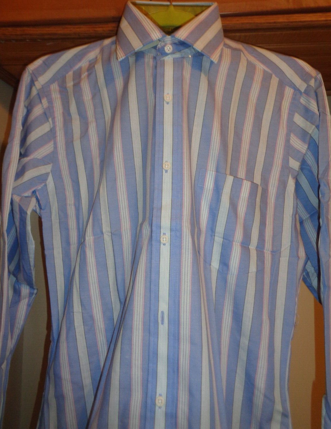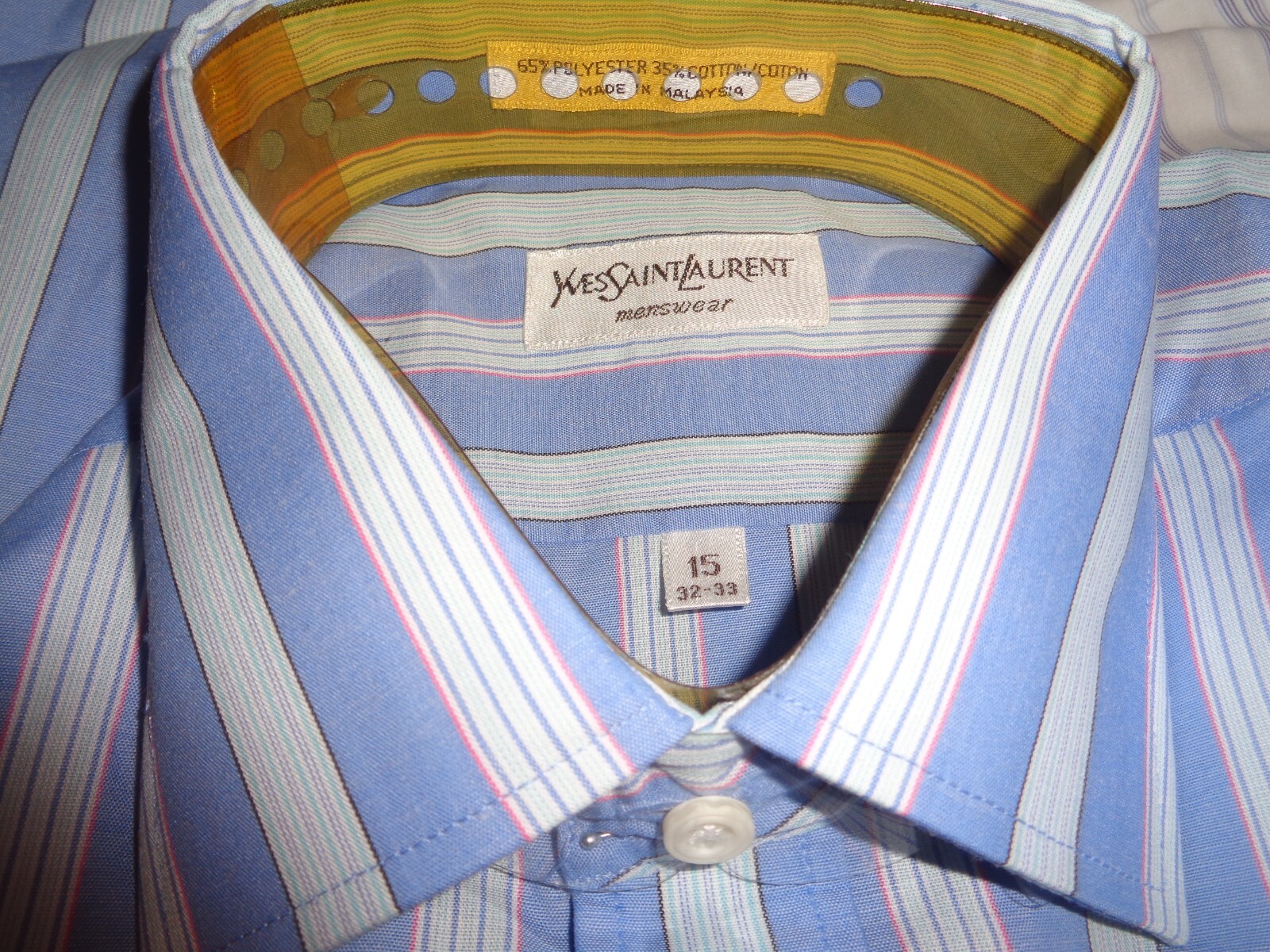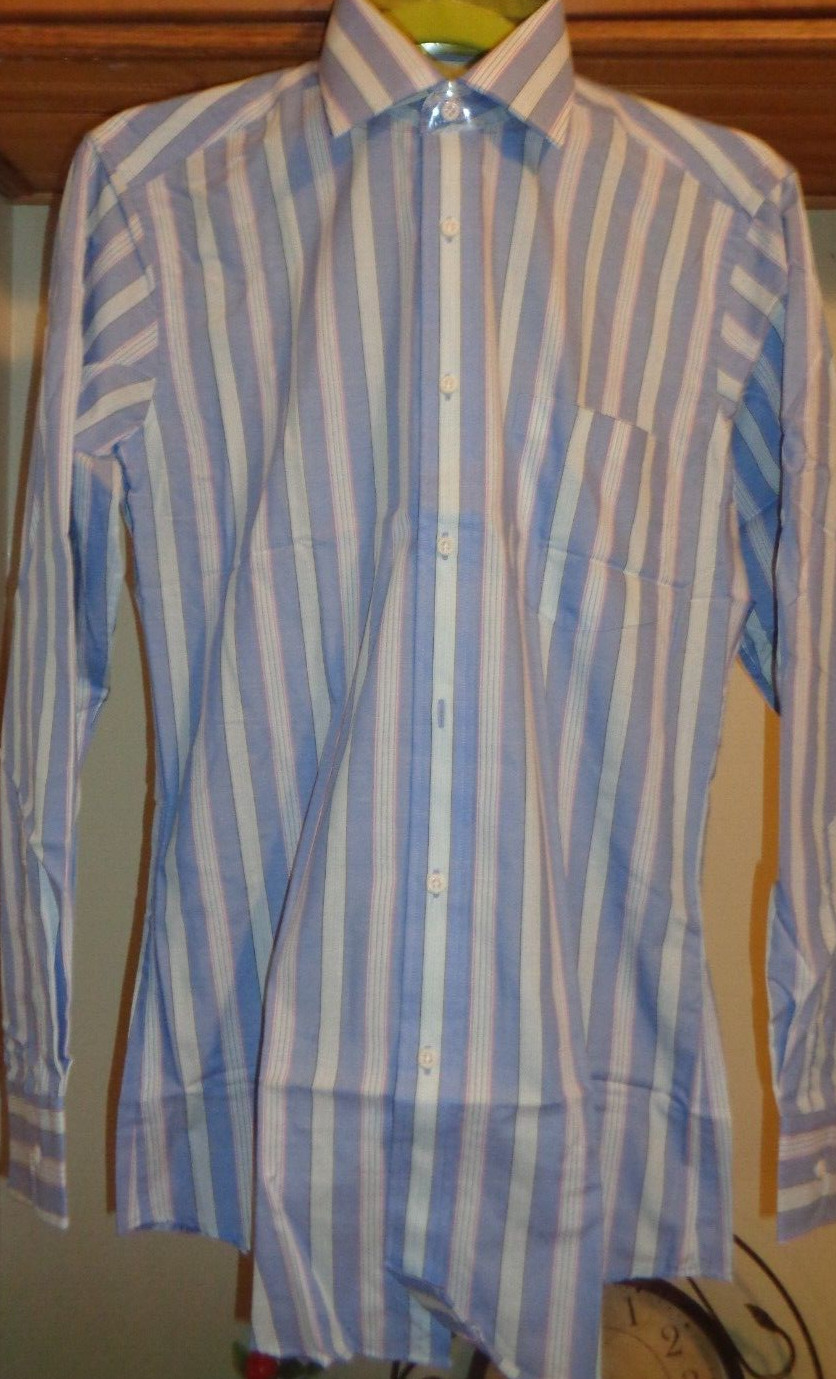 как выглядит YVES SAINT LAURENT BLUE/MULTI STRIPED DRESS SHIRT NWT SZ 15 -32 фото