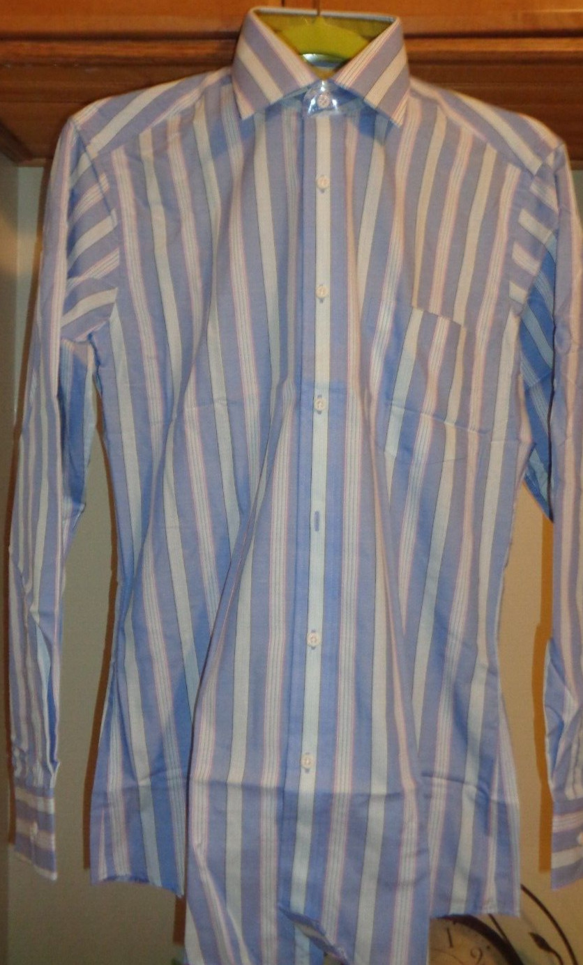 YVES SAINT LAURENT BLUE/MULTI STRIPED DRESS SHIRT NWT SZ 15 -32