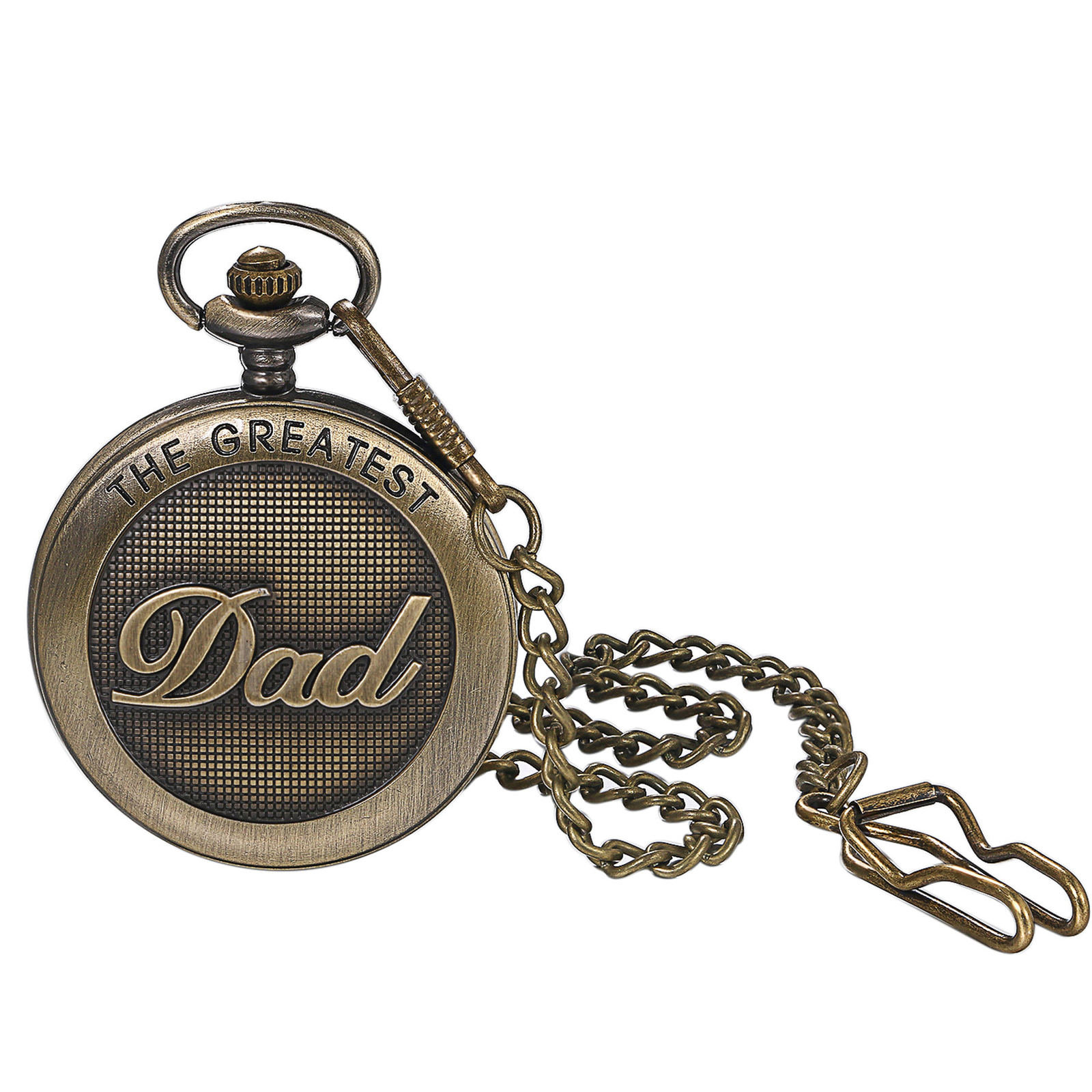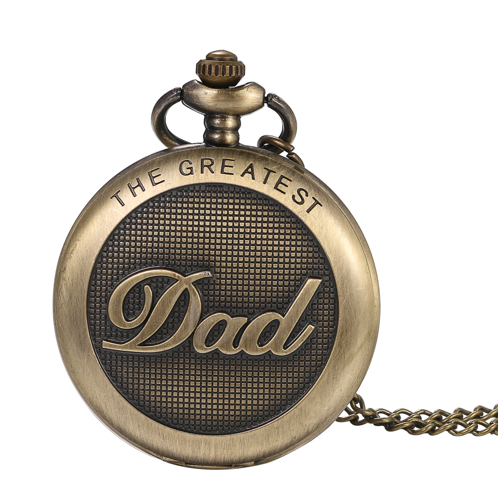 The GREATEST DAD Quartz Bronze Tone Pocket Watch Necklace Chain Fathers Day Gift