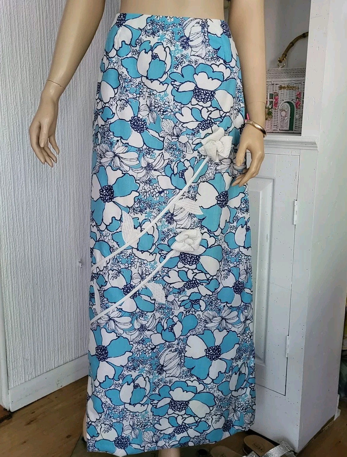 Vintage Lilly Pulitzer 1960s 3D Flowers On Front The Lilly Maxi Skirt S/M